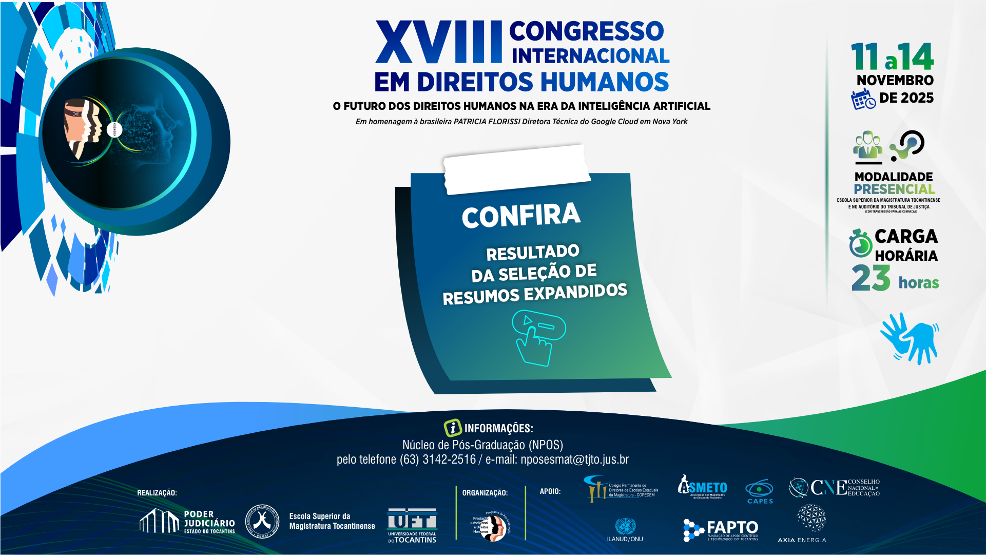 A Escola Superior da Magistratura Tocantinense (Esmat) e a Universidade Federal do Tocantins (UFT), por meio do Programa de Pós-Graduação Stricto Sensu em Prestação Jurisdicional e Direitos Humanos (PPGPJDH), divulgam, nesta quinta-feira (6/11), a lista dos resumos aprovados para apresentação durante o XVIII Congresso Internacional em Direitos Humanos.
