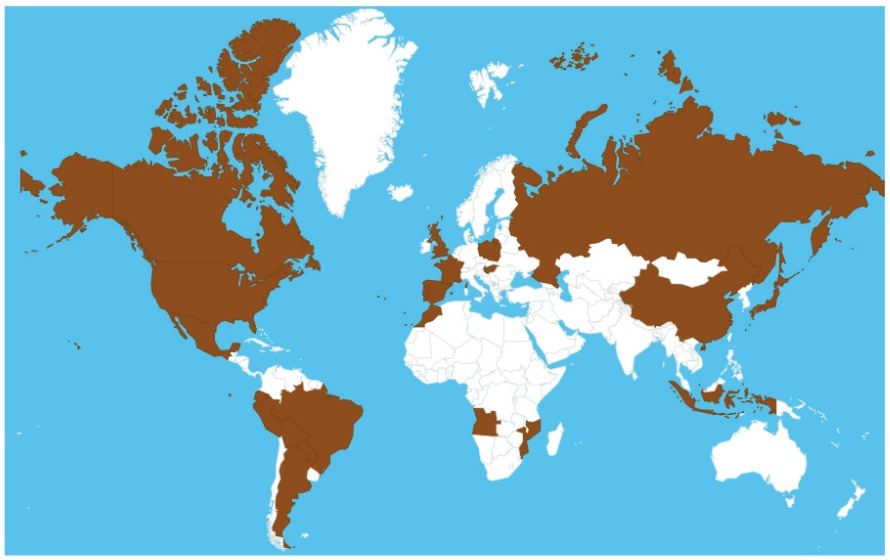 O alcance internacional da Revista pode ser visualizado no mapa abaixo: