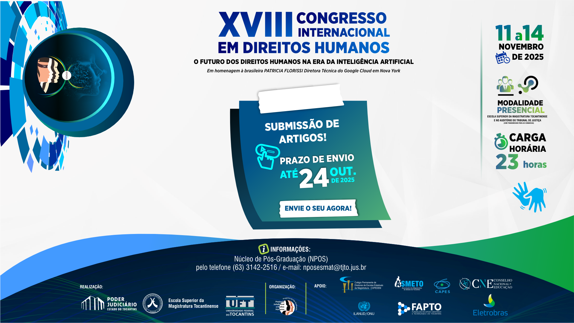 O Congresso ocorre no período de 11 a 14 de novembro, em Palmas (TO), com o tema “O Futuro dos Direitos Humanos na Era da Inteligência Artificial”. A chamada busca fomentar a produção científica e estimular o debate acadêmico sobre os impactos das novas tecnologias nos direitos fundamentais.