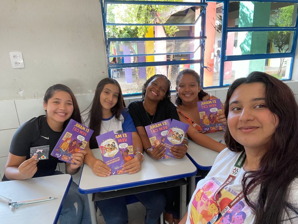 “A ação foi incrível! Conseguimos realizar a oficina com seis turmas, proporcionando um espaço de troca significativo com as alunas e os alunos. Conseguimos garantir um ambiente seguro, onde as meninas puderam questionar, refletir e debater sobre o tema proposto. Ao final da ação, nos reunimos com a equipe multidisciplinar para oferecer uma devolutiva