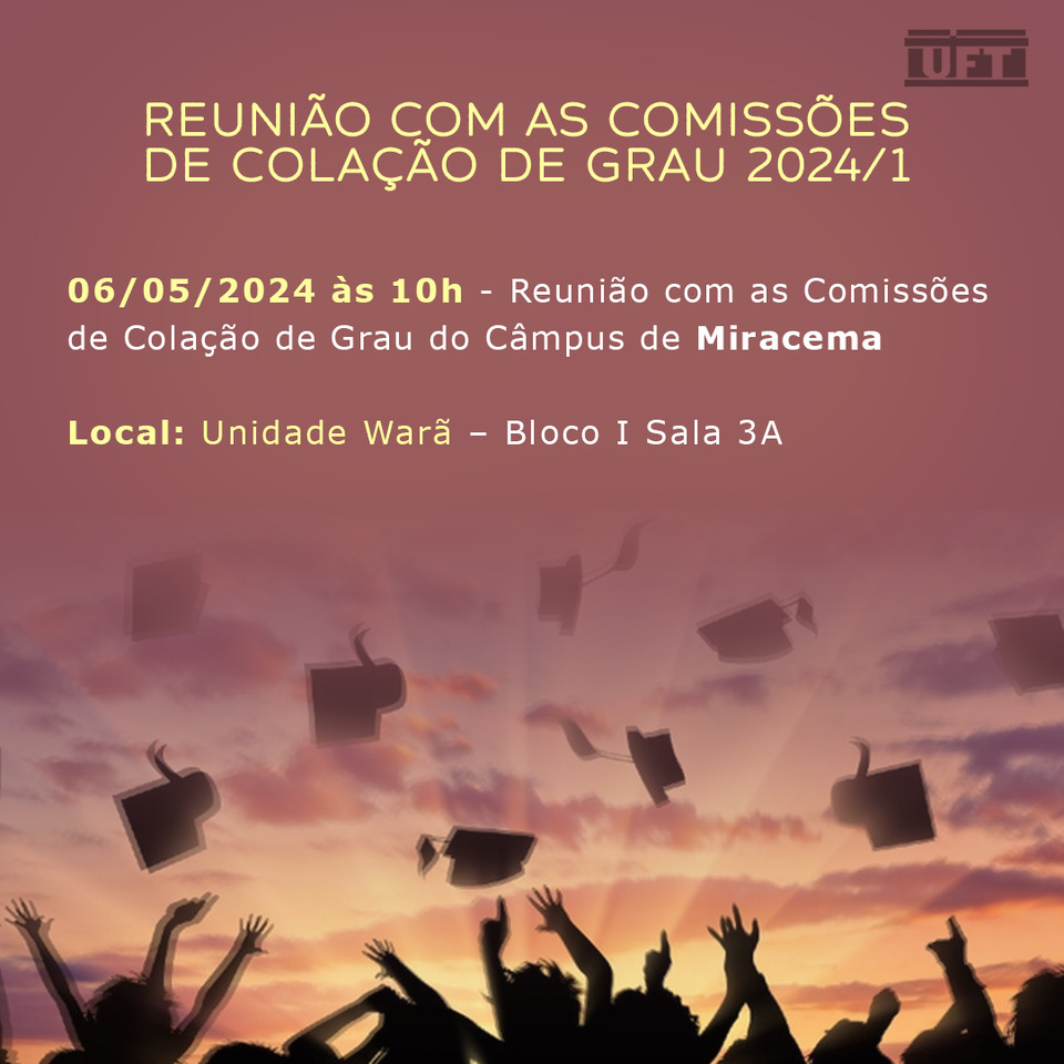 O setor de Cerimonial Oficial da UFT convoca todas as Comissões de Colação de Grau 2024/1 dos cinco câmpus da UFT.
