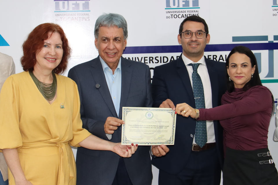 O curso de Agronomia do Câmpus da UFT em Gurupi é o primeiro no Brasil a receber o Selo de Acreditação da Confederação dos Engenheiros Agrônomos do Brasil (Confaeab). A certificação ocorreu na manhã desta quarta-feira (10), no Gabinete da Reitoria da Universidade Federal do Tocantins, com a presença de autoridades acadêmicas, da Confederação e de entidades profissionais. O Selo tem validade de três anos e a UFT foi a única certificada no Tocantins pela Confederação.