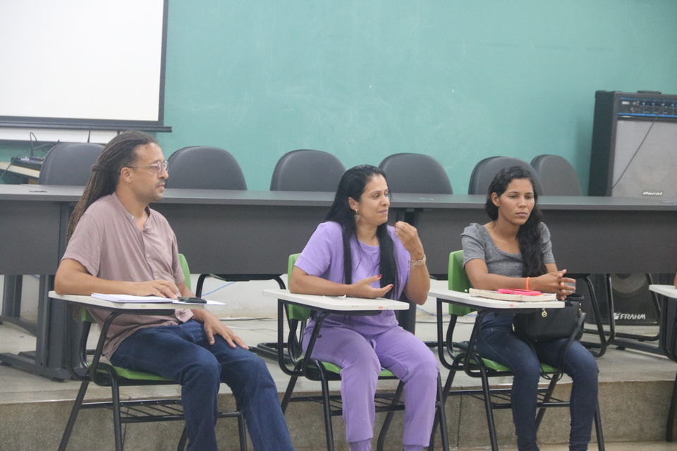 As atividades tiveram início com a aula temática “Linguagem e suas relações”, que abordou língua, oralidade, escrita, troncos linguísticos, línguas indígenas e gramática, sempre a partir da realidade dos territórios. Na quinta-feira à noite, os estudantes participaram de um cine-debate com o filme Xingu, seguido de uma roda de conversa que aprofundou as discussões iniciadas em sala.