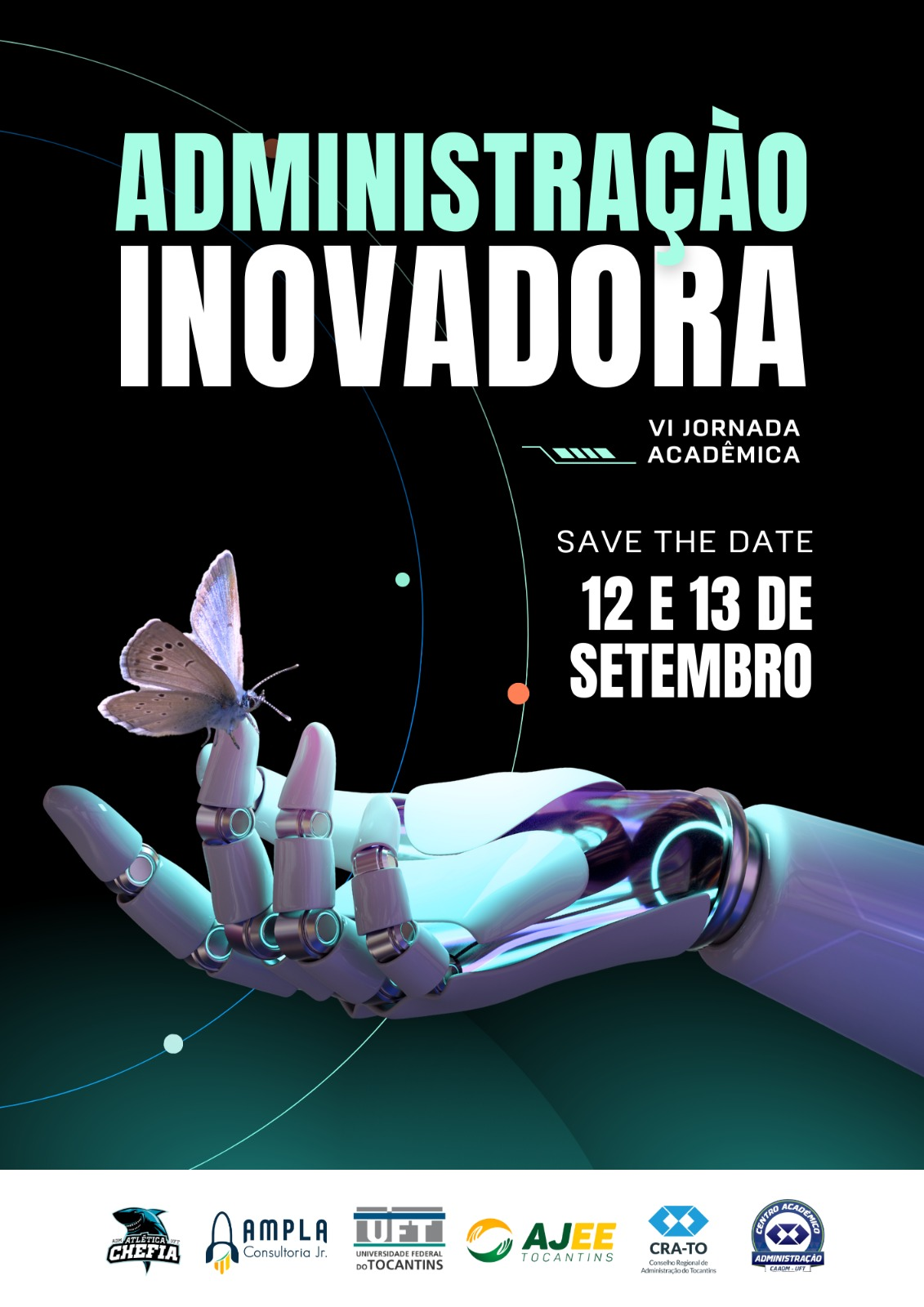 Para celebrar o Dia do Administrador, os professores do Curso de Administração da UFT, Kleber Abreu e Sandra Alberta, promovem nos dias 12 e 13 de setembro, no auditório da Reitoria, a VI Jornada Acadêmica – Administração Inovadora com o objetivo de abordar o quesito inovação nas práticas de gestão. O evento é estendido a profissionais da administração, Economia, Ciências Contábeis, empreendedores, bem como, a toda comunidade interna e externa à UFT.