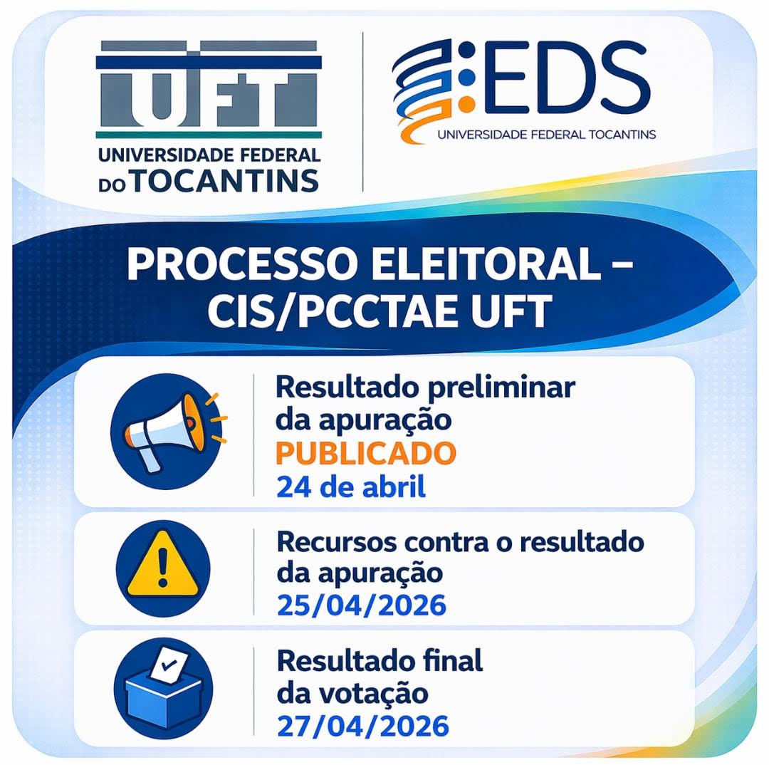 A Pró-Reitoria de Gestão e Desenvolvimento de Pessoas da UFT (Progedep) divulgou o Resultado Final da Apuração da Votação para a escolha dos membros da Comissão Interna de Supervisão do Plano de Carreira dos Cargos Técnico-Administrativos em Educação (CIS/PCCTAE)