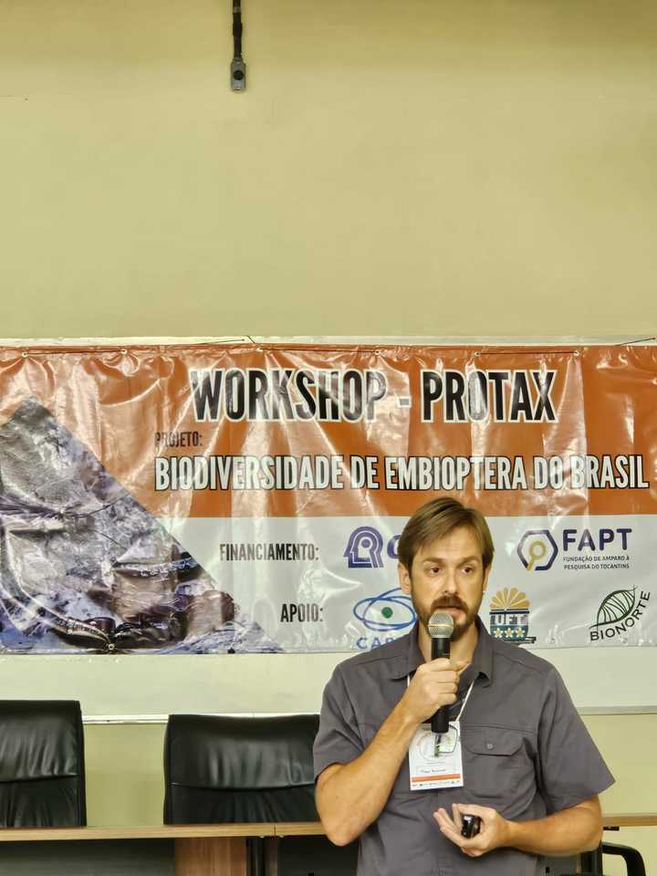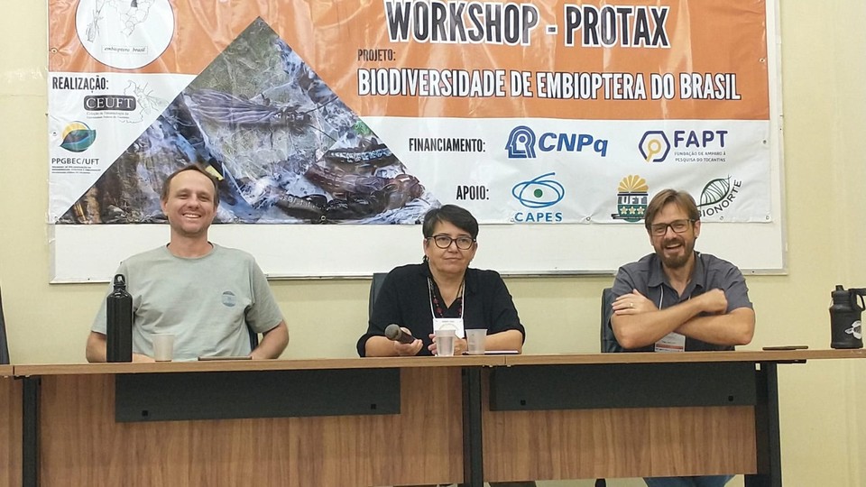 Estudantes de graduação e pós-graduação, pesquisadores e profissionais interessados em sistemática, entomologia e biodiversidade e docentes do Câmpus de Porto Nacional e palestrantes convidados, participaram de 11 a 16 de novembro últimos, em Porto Nacional, do workshop "Biodiversidade de Embioptera do Brasil" e de atividades relacionadas à disciplina "Técnicas de coleta, criação, preservação e identificação de Embioptera (Insecta)”, que faz parte do quadro de disciplinas optativas do Programa de Pós-Graduação em Biodiversidade, Ecologia e Conservação (PPGBec), sendo ministrada pelo professor Tiago Krolow. Os eventos foram promovidos pela Coleção de Entomologia da UFT (CEUFT) e pelo PPGBec.