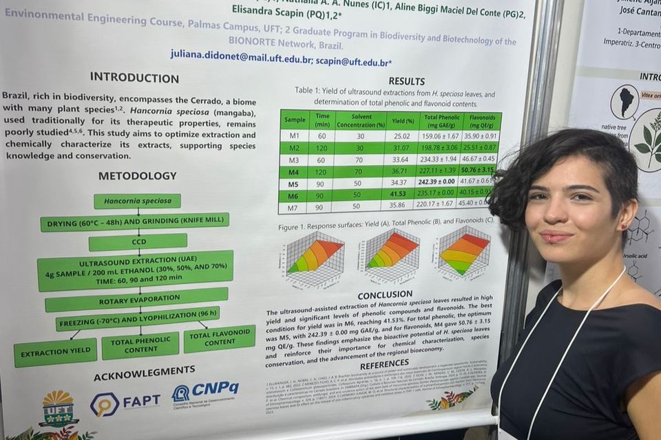 Segundo Elisandra Scapin, os três estudantes apresentaram resultados diretamente vinculados a um projeto aprovado no edital Rosas da Ciência, financiado pela Fundação de Apoio Científico e Tecnológico do Tocantins (FAPTO). “As cinco pesquisas apresentadas, três dos estudantes e outras duas das professoras contemplam estudos com Mangaba, Baru, Vergateza, Jequitibá-vermelho e Pequi, espécies nativas da Amazônia Legal e que integram o conjunto de plantas investigadas no LaPNaBio. Os trabalhos apresentados no evento são fruto do avanço dessas investigações, reforçando o compromisso da UFT com ciência regional, tecnologias limpas e valorização da biodiversidade”, comemora.