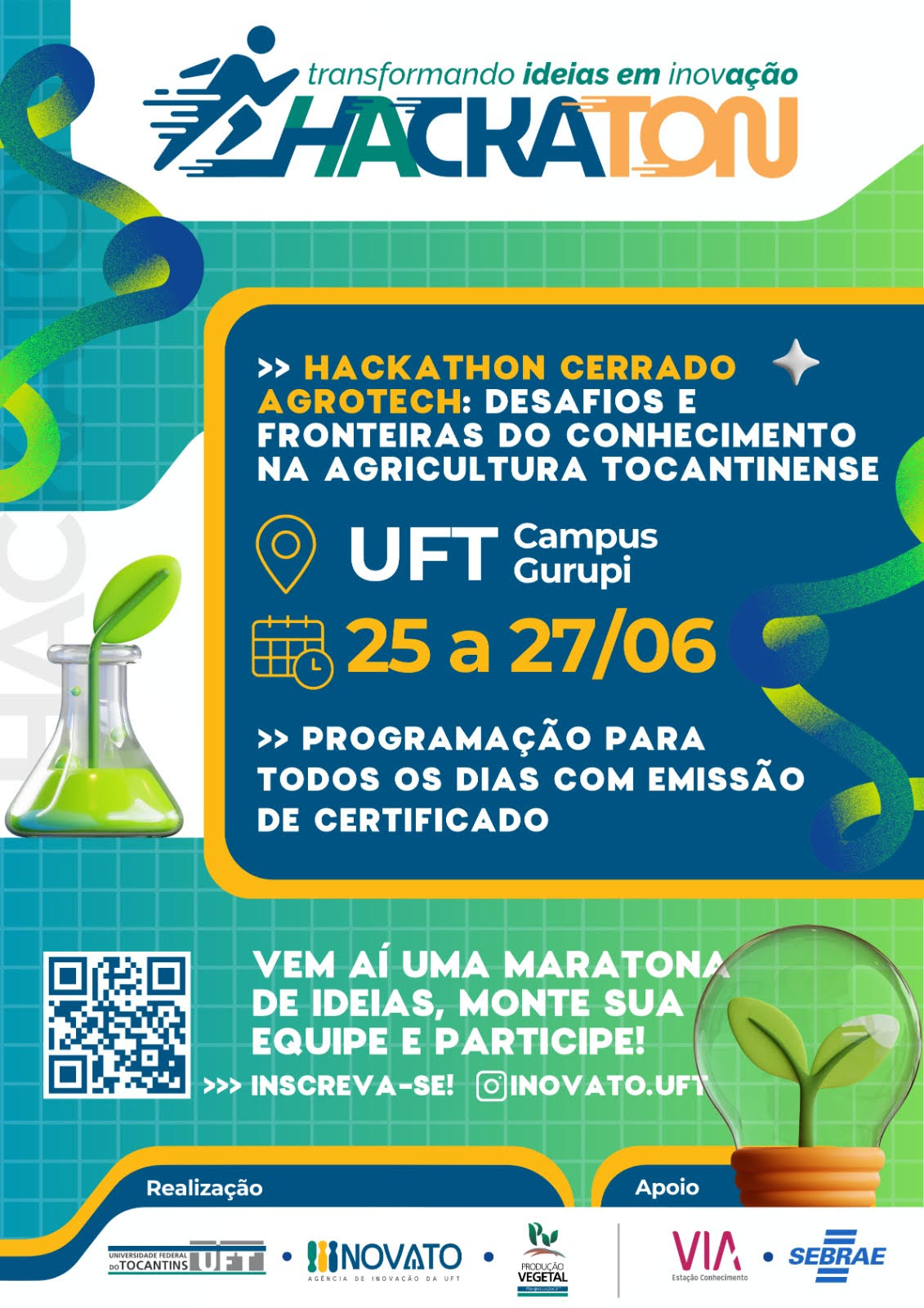 O Hackathon Cerrado AgroTech tem início nesta quarta-feira (25), no Câmpus de Gurupi, e segue até o dia 27 de junho de 2025. A iniciativa é promovida pela Agência de Inovação da Universidade Federal do Tocantins (Inovato), em parceria com o Programa de Pós-Graduação em Produção Vegetal (PPGPV) e a Universidade Federal de Santa Catarina (UFSC).