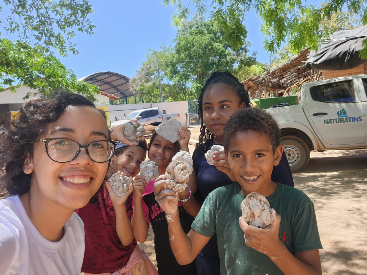 Para Bruna Yasmin, estudante de Medicina na UFT, levar o que é construído no Câmpus às comunidades que vivem distantes da universidade e ser recebida com empolgação por lá foi tocante. “Tiveram muitos momentos que me lembraram o quanto a construção de conhecimento só é plena se for coletiva: as crianças reconheciam vários dos crânios de animais que eu nunca vi na natureza; aprendi com elas outros nomes para os mesmos bichos; e vislumbrei de forma mais próxima o bioma que marca o lugar em que nasci”, destaca.