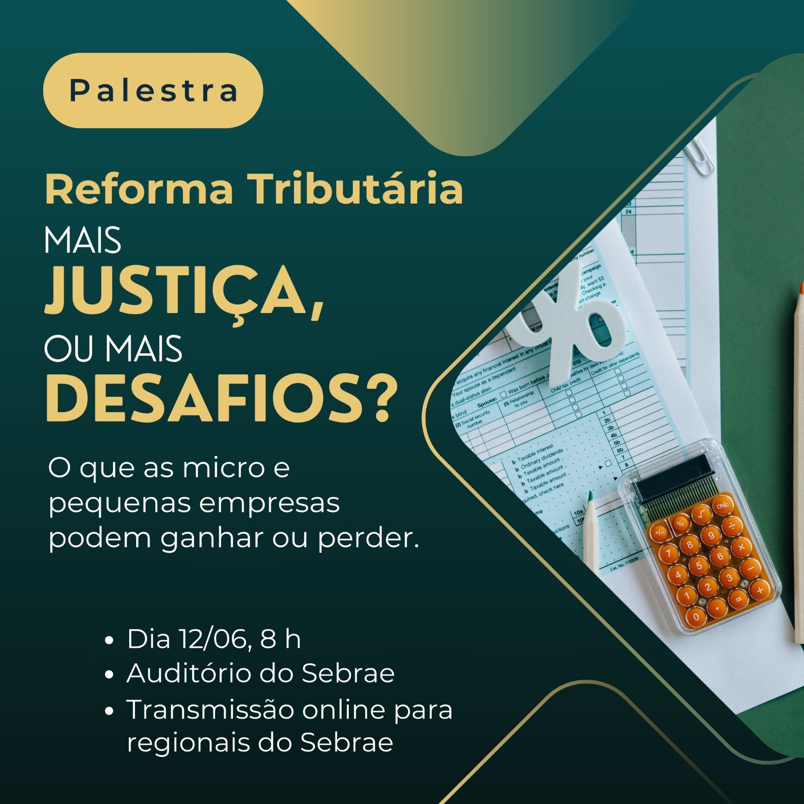 - O quê: Reforma Tributária. Mais justiça ou mais desafios? O que as micro e pequenas empresas podem ganhar ou perder.