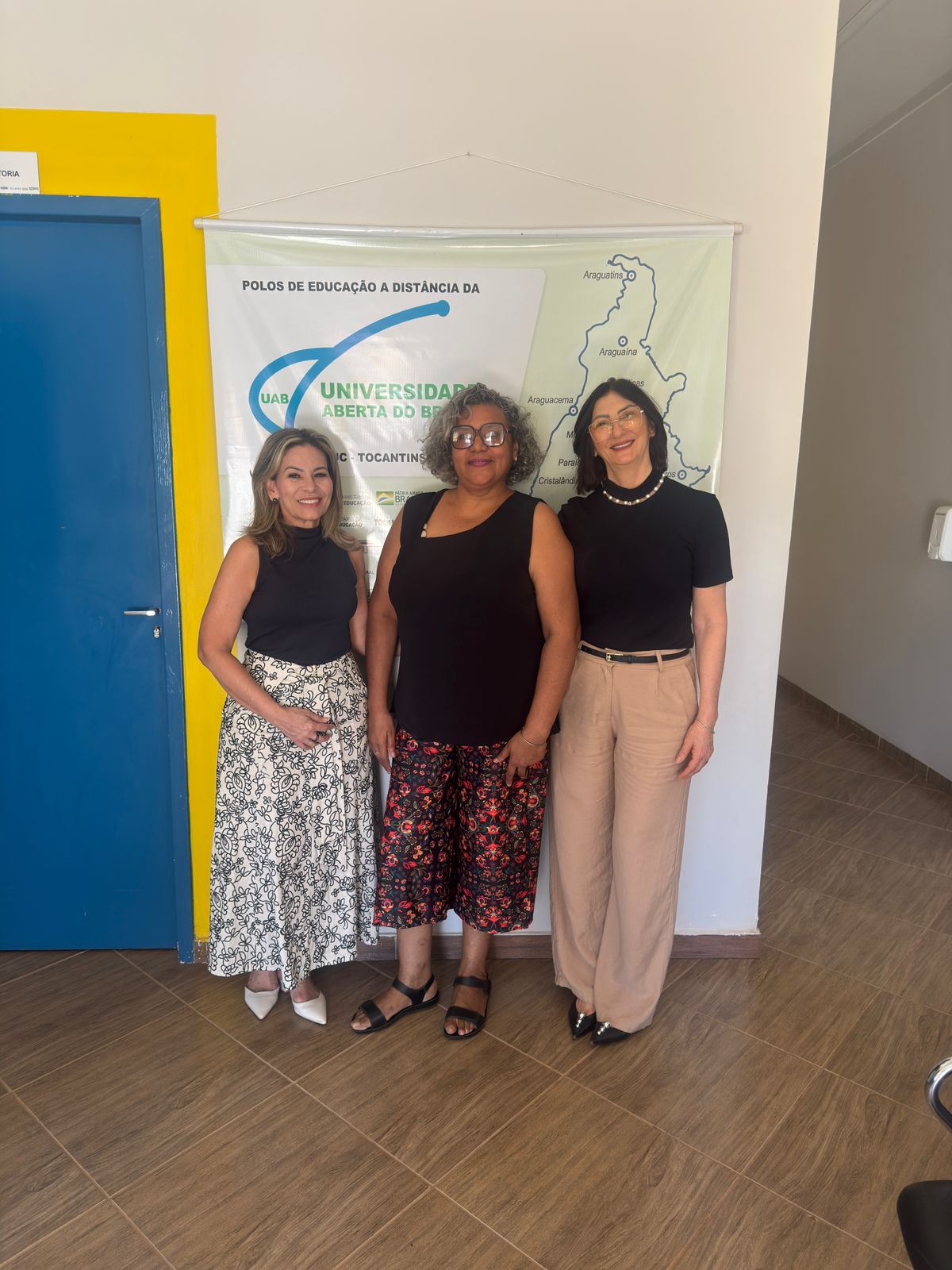 O recebimento dos livros na UAB contou com três representantes (Da direita para a esquerda, na foto): Lêda Maria Tomazi Fagundes, diretora de Política Formação Inicial e Continuada (DFIC); Maria do Socorro Saturno da Silva, coordenadora Polo UAB-EaD de Miracema do Tocantins/TO; Marileide Carvalho de Souza, gerente de Política de Formação Inicial dos Profissionais da Educação (GPFIPE).