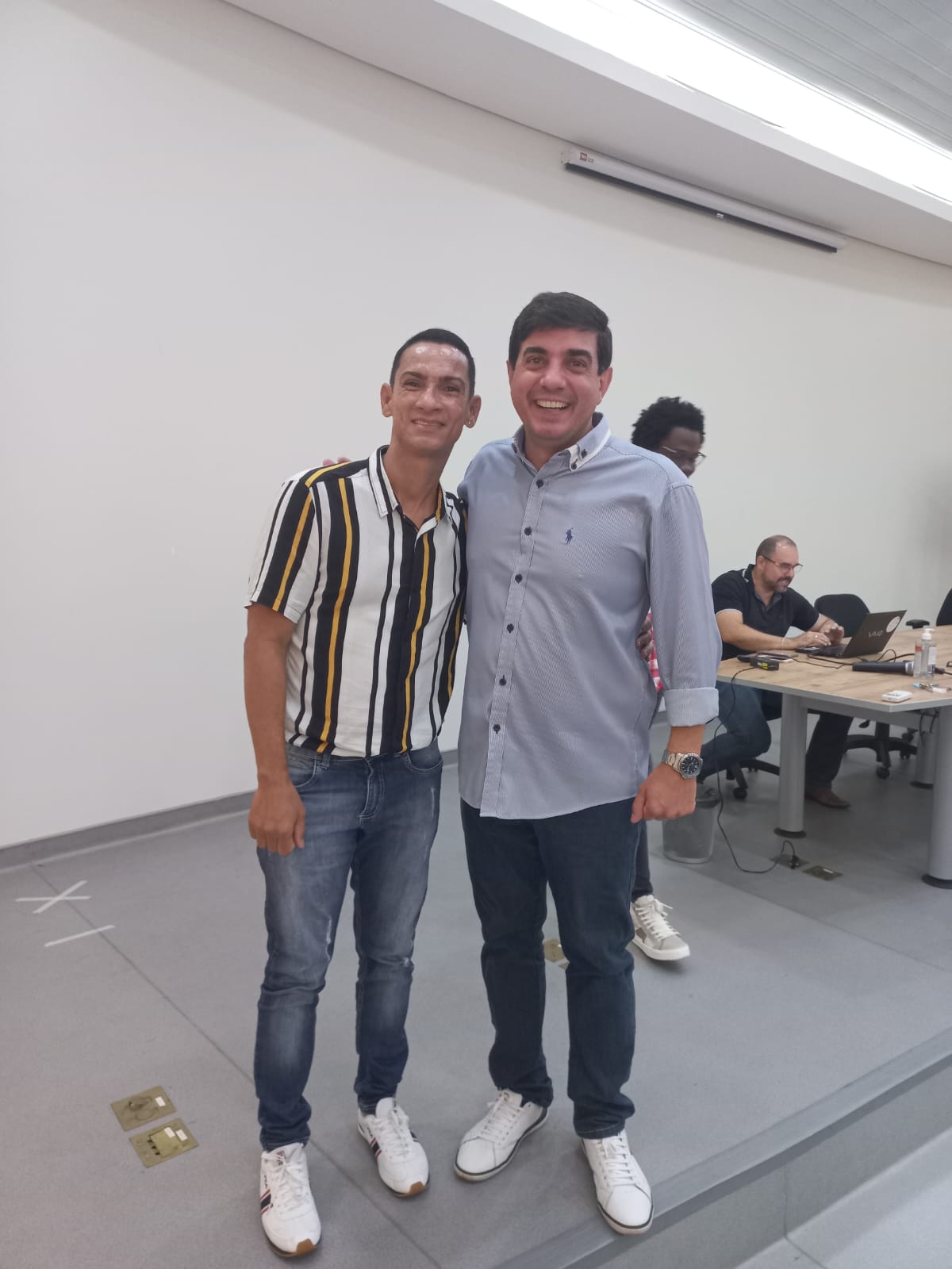 Fruto da pesquisa do doutorado do professor Fernando Cardoso dos Santos, do Câmpus de Miracema, foi lançado no último dia 23 de junho a obra "Mão silenciadas: o contexto sociolinguístico dos surdos do interior do Tocantins". A publicação, construída a quatro mãos (do professor Santos e seu orientador, professor Cássio Florêncio Rubio (foto ao lado), da Universidade Federal de São Carlos (UFSCar)), aborda as práticas comunicativas de sujeitos surdos em municípios no interior do Estado; o professor Santos é surdo e concluiu seu doutorado pelo Programa de Pós-Graduação em Linguística da UFSCar.