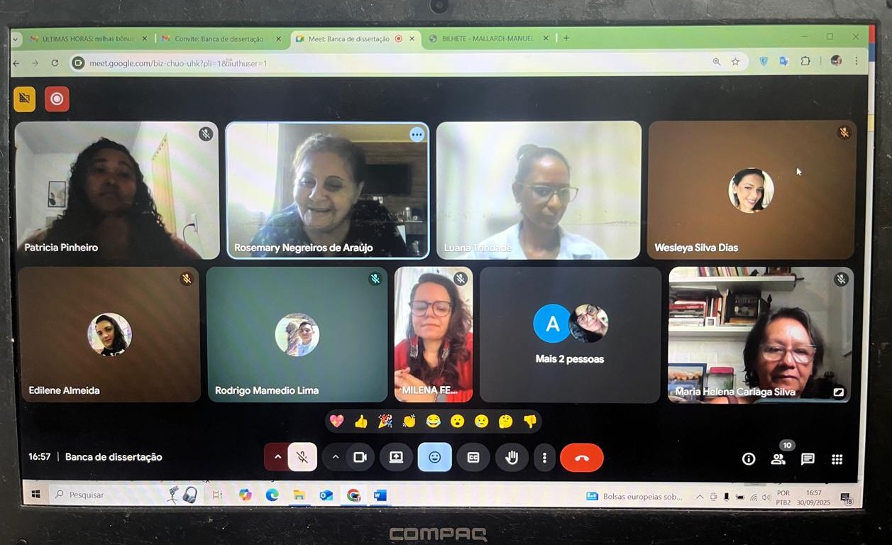 A defesa ocorreu por videoconferência e contou com uma banca formada por professoras de diferentes instituições. A Comissão foi presidida pela professora Rosemary, e teve a participação da professora coorientadora Luana Ribeiro da Trindade (Universidade Federal do Espírito Santo); da professora Maria Helena Cariaga Silva (UFT); e da professora Milena Fernandes Barroso (Universidade Federal de Sergipe). Conforme Rosemary, a diversidade de trajetórias trouxe olhares distintos e fortaleceu o debate sobre a presença quilombola na universidade.
