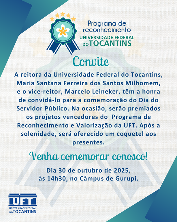 As ações desta celebração integram o Programa de Reconhecimento e Valorização dos Servidores da instituição, implantado pela Portaria Normativa nº 12/2023 – Gabinete da Reitoria/UFT. A iniciativa, segundo os dados da Progedep, tem como objetivo reconhecer a dedicação e o espírito de colaboração que fortalecem e consolidam a Universidade.
