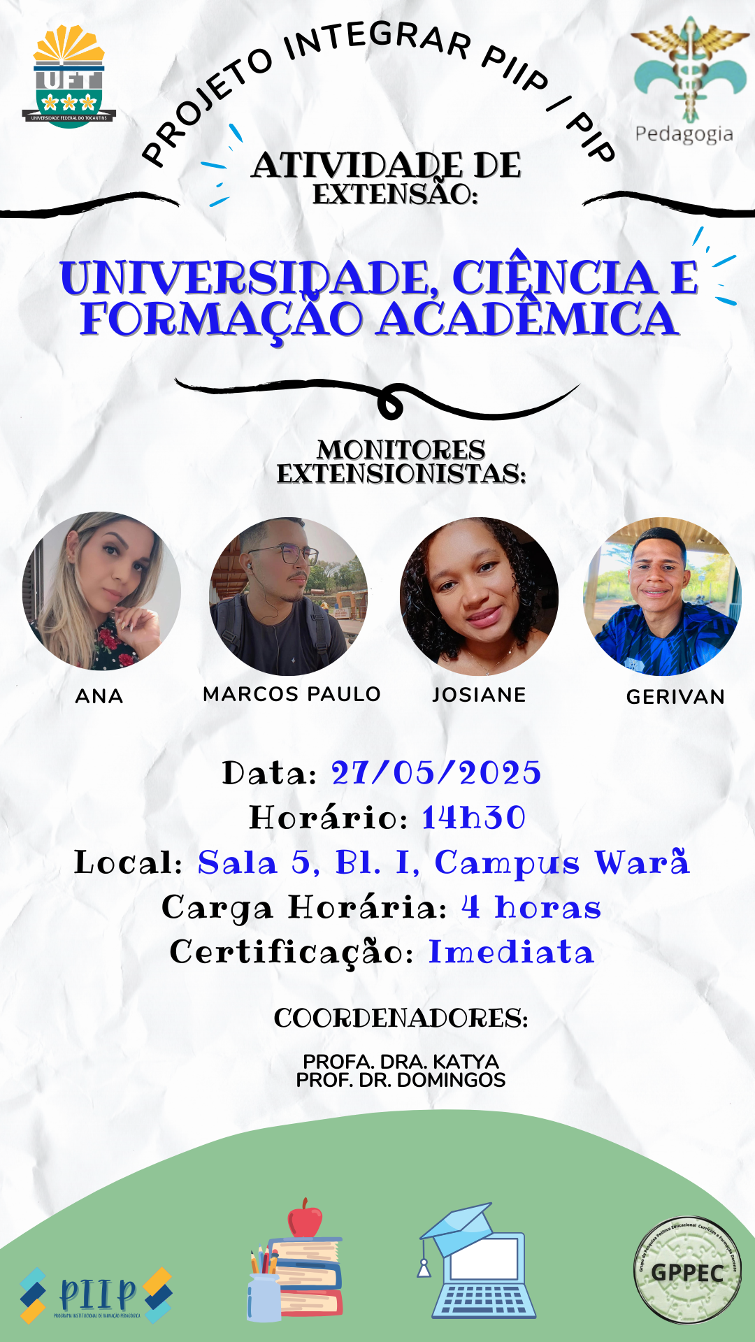 Destinado aos alunos do curso de Pedagogia do Câmpus de Miracema, o minicurso também aceita a participação de estudantes de outros cursos que tenham interesse no tema.