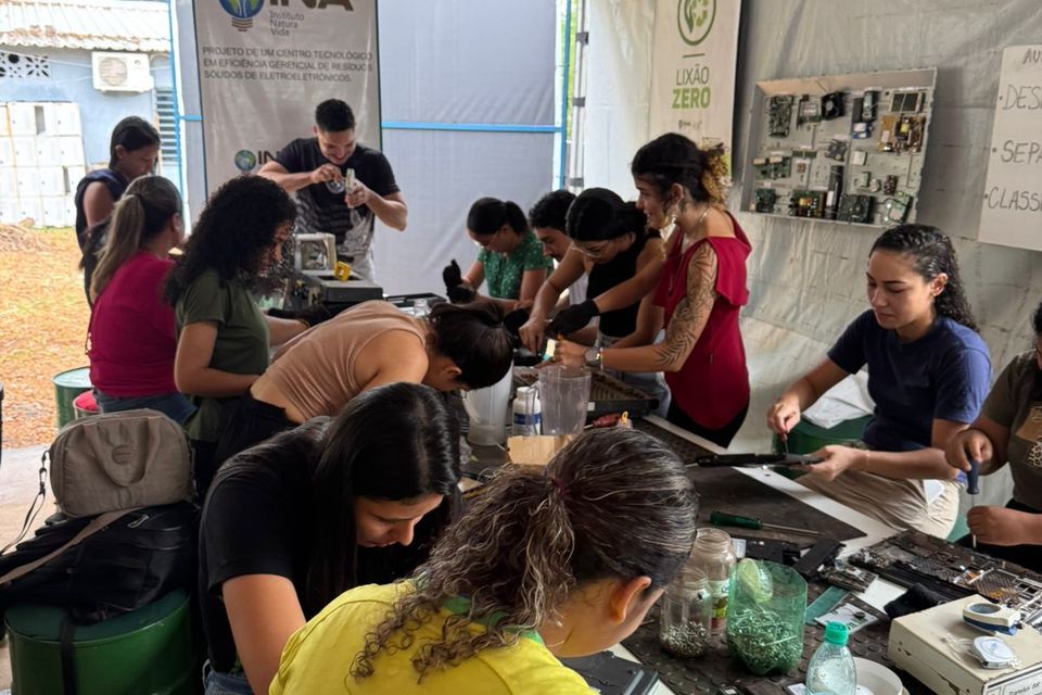 A ação foi realizada em parceria com o Instituto Natura Vida (INA), e estruturou um espaço que funciona como Ecoponto de Resíduos Eletroeletrônicos, onde 24 participantes receberam treinamento técnico para o desmonte seguro de equipamentos eletrônicos e o reaproveitamento de componentes. De acordo com a coordenação, até o momento, foram processados mais de 350 quilos de REEE’s (Resíduos de Equipamentos Eletroeletrônicos), promovendo a destinação correta desses materiais altamente poluentes.