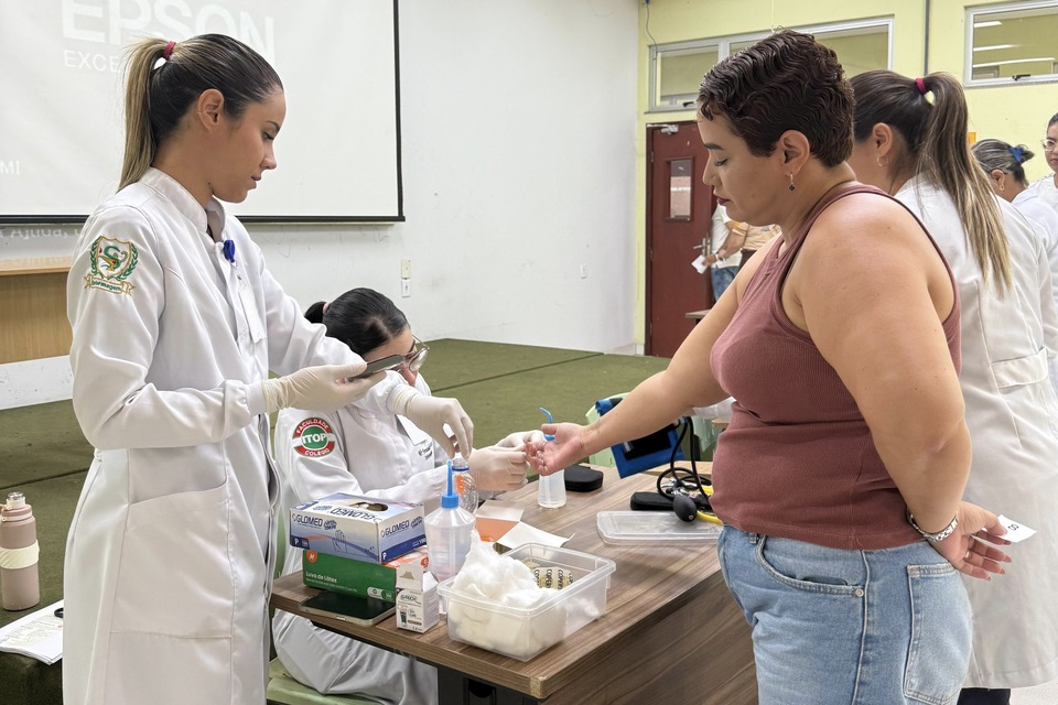 Durante o evento, estudantes do curso de Enfermagem da Faculdade Itop também realizaram aferição de pressão arterial e glicose. A acadêmica Maria Fernanda destacou a importância da ação: “São doenças silenciosas, e a prevenção é o melhor remédio. Nosso objetivo é conscientizar sobre hábitos saudáveis e autocuidado”.