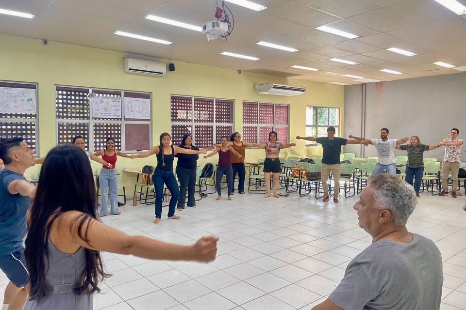 Por fim, a turma do curso de especialização em Bem-Estar, Saúde e Lazer Docente trabalhou a "Saúde Física e Emocional no Ambiente Escolar", com o professor e coordenador do Cepels, Kelber Abrão, e também as participações dos educadores Hiago Cruz e Ana Paula. “Trabalhamos com dinâmicas interdisciplinares e atividades voltadas à roda da vida, refletindo sobre o bem-estar integral dos docentes”, relatou ele, após três turnos de aulas que envolveram movimento corporal, reflexão individual, música e dinâmicas de grupo.