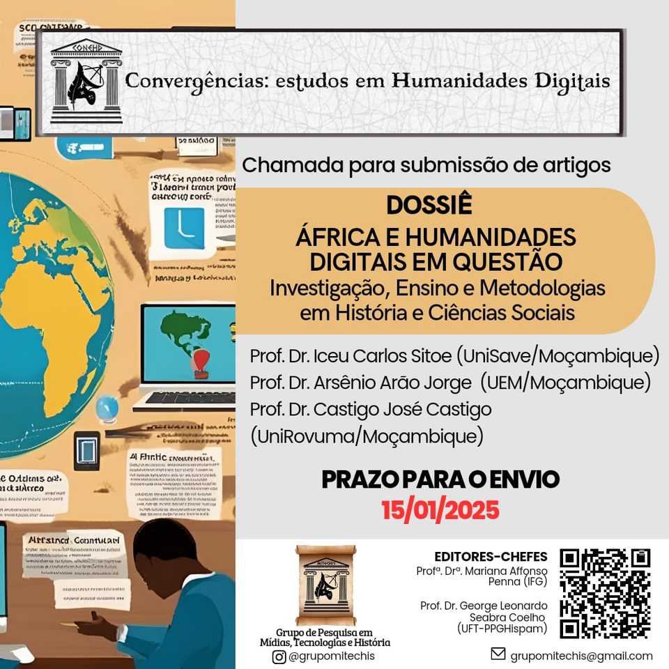 Outra seleção da revista também está com inscrições abertas, a categoria Dossiê sobre a África e Humanidades Digitais em Questão: Investigação, Ensino e Metodologias em História e Ciências Sociais, com prazo para submissão até 15 de janeiro de 2025.