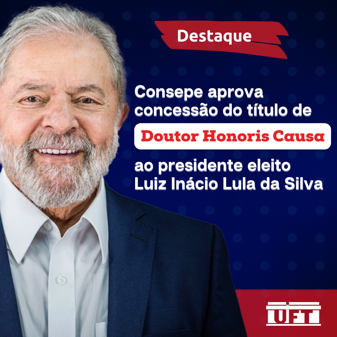 O Conselho de Ensino, Pesquisa e Extensão (Consepe) da Universidade Federal do Tocantins (UFT) aprovou, nesta terça-feira (06), em sua 112ª reunião ordinária, a concessão do título de Doutor Honoris Causa ao presidente eleito Luiz Inácio Lula da Silva. A homenagem foi uma proposição do reitor, Luís Eduardo Bovolato.