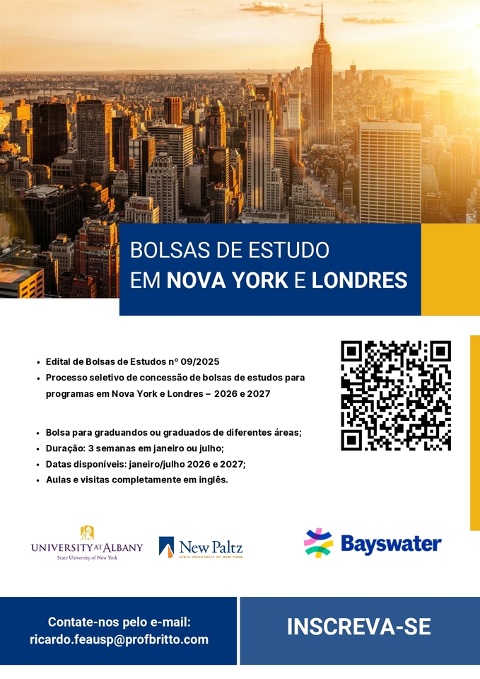 Para apresentar a íntegra dos programas, esclarecer dúvidas e orientar sobre o processo de candidatura, será realizada uma sessão informativa online. Interessados também podem entrar em contato diretamente com o coordenador do processo seletivo pelo e-mail: ricardo.feausp@profbritto.com.
