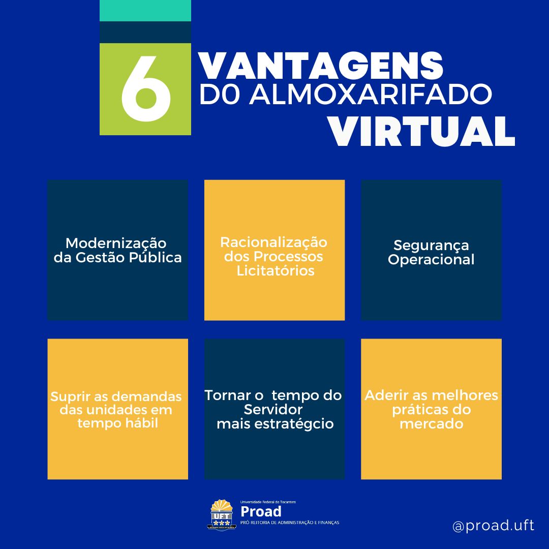 A implantação do Sistema de Almoxarifado Virtual é um resultado da iniciativa da Pró-Reitoria de Administração e Finanças, coordenada pela Diretoria Administrativa, Setor de Patrimônio e a Divisão de Almoxarifado Central. O objetivo é contratar uma empresa especializada para operar logisticamente o processo tradicional de compra e armazenamento de materiais de consumo administrativo, que inclui recepção, armazenagem, separação, expedição, distribuição, guarda, inventário e conservação.