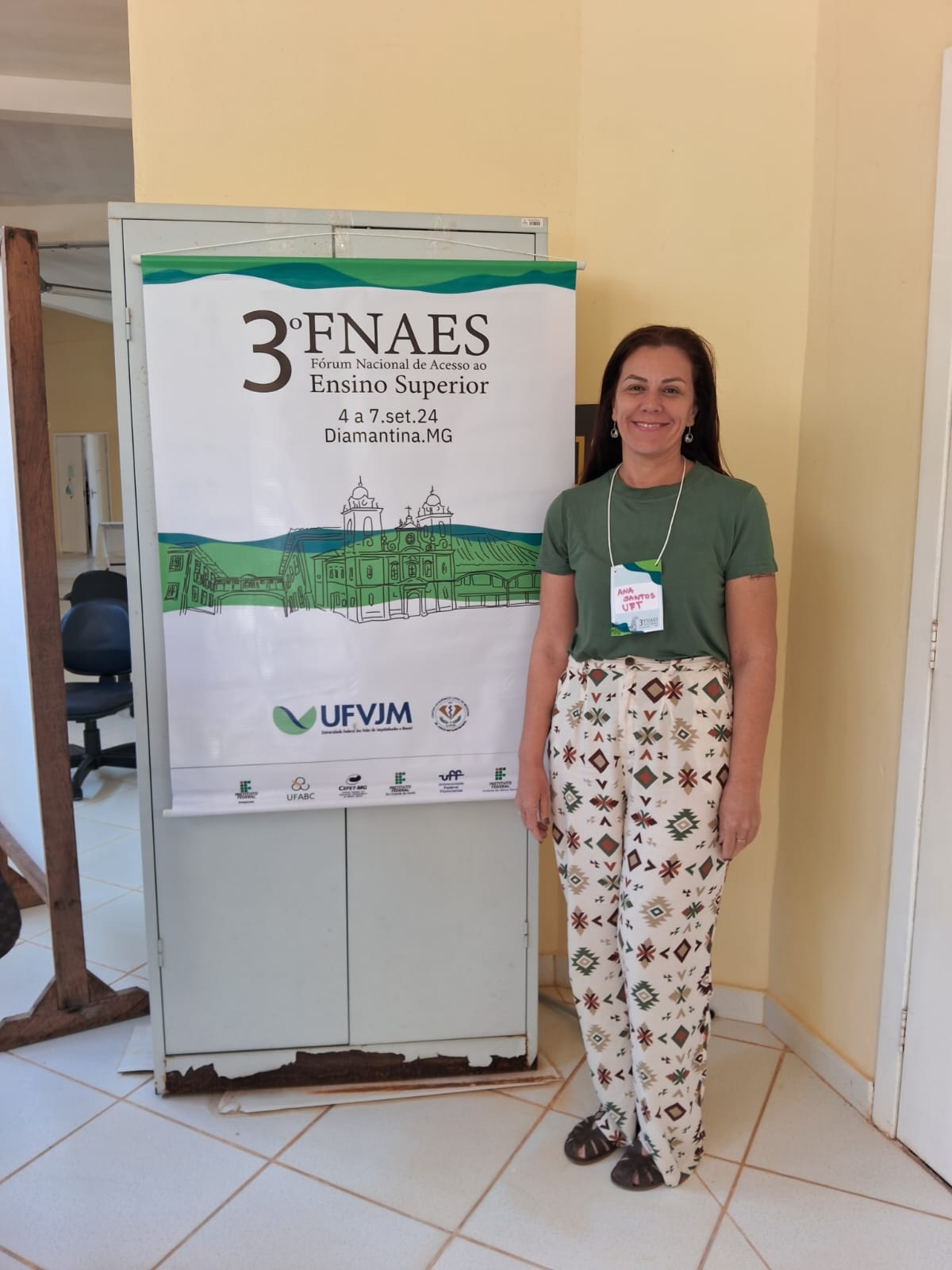 A Coordenadora de Desenvolvimento Estratégico da Pró-Reitoria de Graduação (Prograd) da Universidade Federal do Tocantins (UFT), Ana Santos, responsável pelo ingresso discente, representou a instituição no Fórum Nacional de Acesso ao Ensino Superior (FNAES), realizado de 04 a 07 de setembro de 2024, no Câmpus da Universidade Federal dos Vales do Jequitinhonha e Mucuri (UFVJM), em Diamantina - MG. O evento reuniu representantes de instituições públicas de ensino superior e de educação profissional para discutir temas centrais relacionados aos processos de ingresso de estudantes.