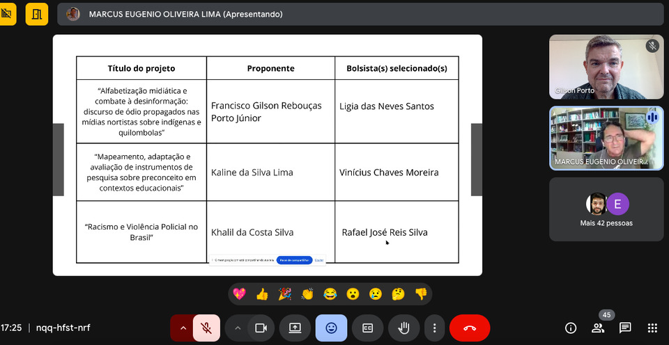 Na última sexta-feira (9), integrantes do Instituto Nacional de Ciência e Tecnologia Observatório Nacional dos Preconceitos (INCT-ONP) se reuniram para discutir ações do programa voltadas ao fortalecimento da pesquisa sobre preconceito e intolerâncias no Brasil. A iniciativa faz parte da Chamada MCTI/CNPq/SECTICS/MS/CAPES/FAPs nº 46/2024, que apoia o Programa Institutos Nacionais de Ciência e Tecnologia (INCT).