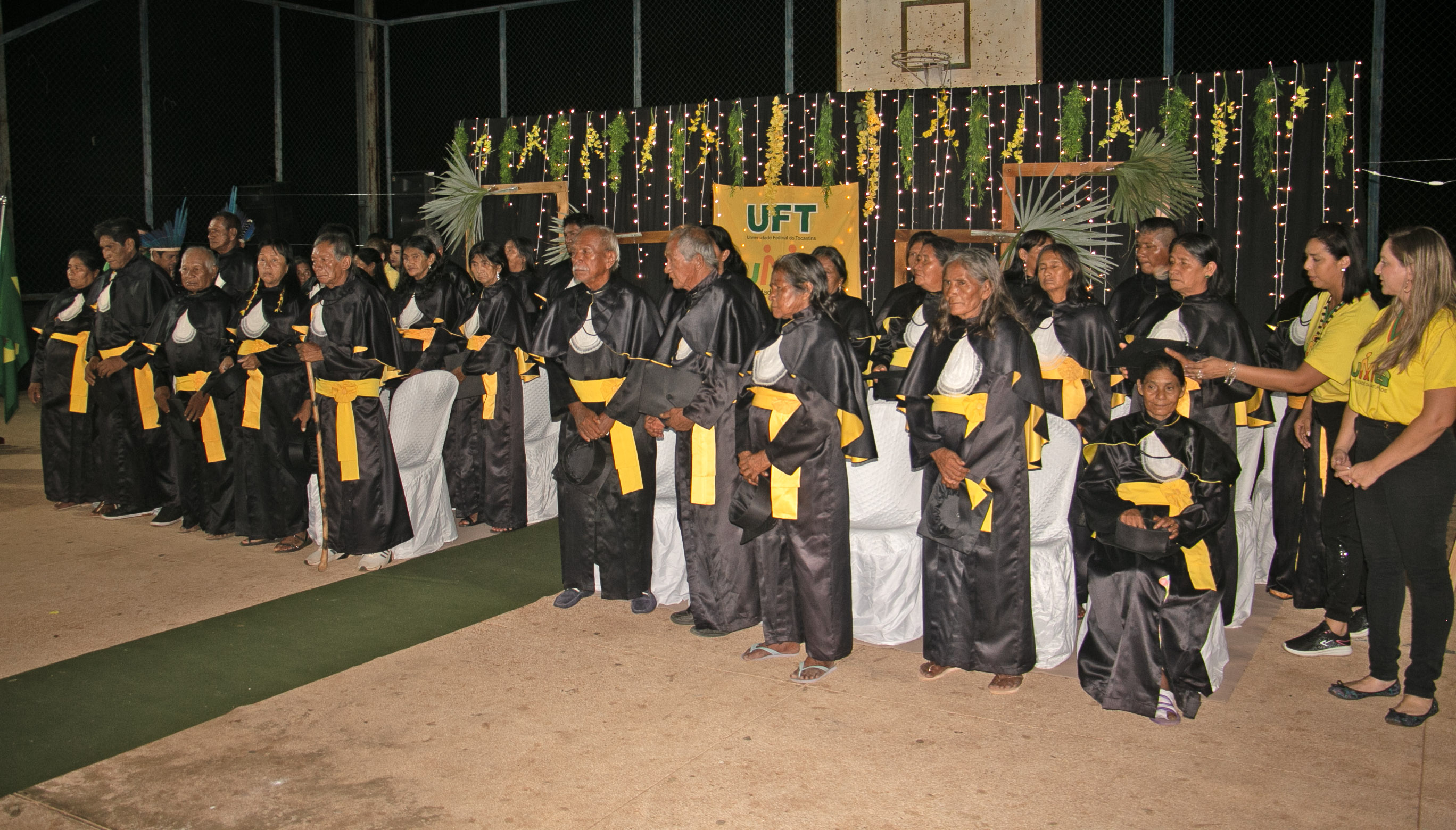 A formatura dos 28 anciãos do povo Xerente foi realizada nessa quinta-feira (21) no Centro de Ensino Médio Indígena Xerente – Warã, em Tocantínia. Emoção e representatividade marcaram a colação de grau da Universidade da Maturidade (UMA), da Universidade Federal do Tocantins (UFT) – polo de Tocantínia, primeiro polo voltado para a educação de pessoas idosas indígenas do Brasil.