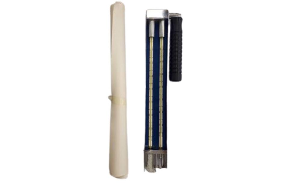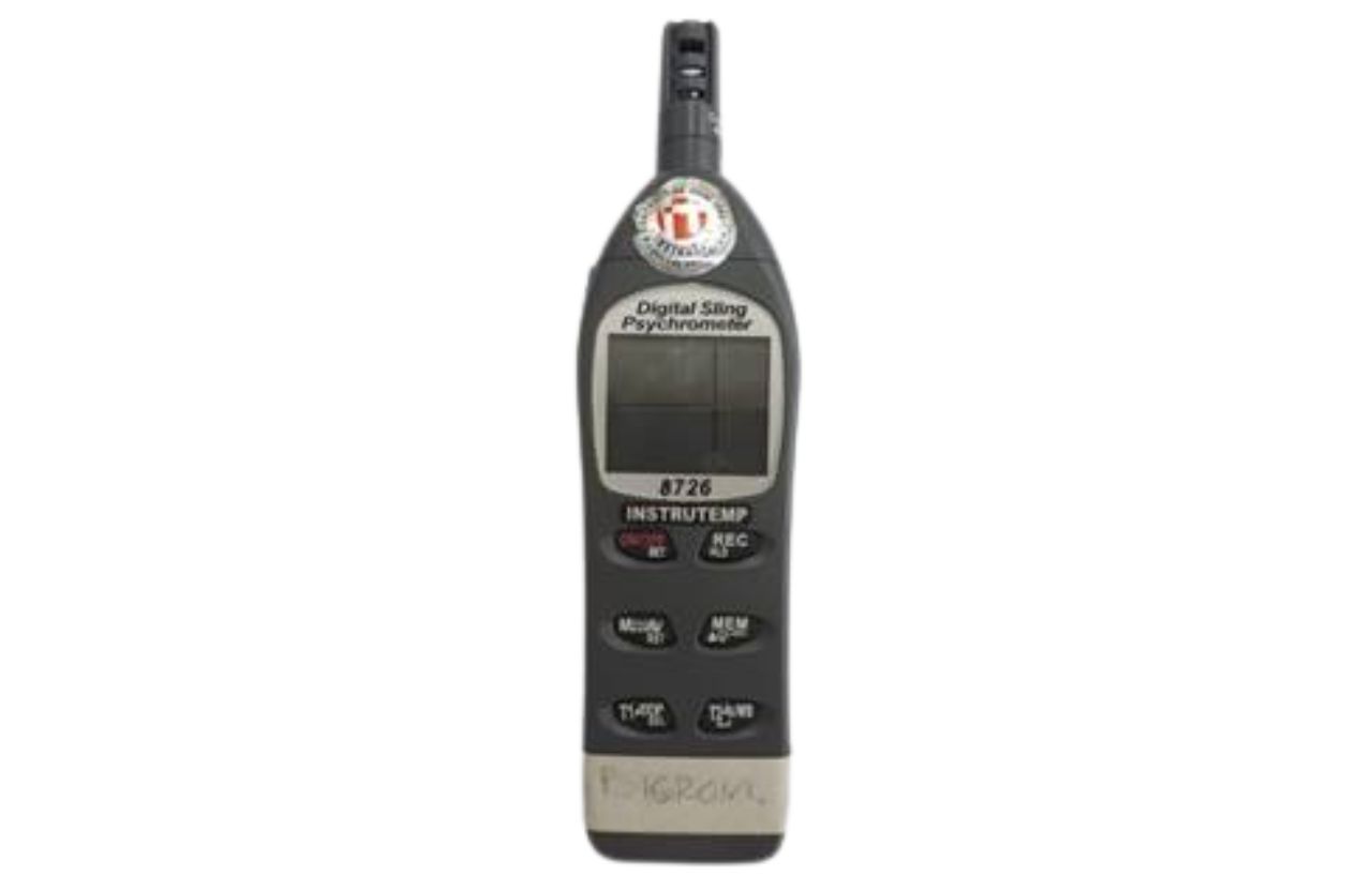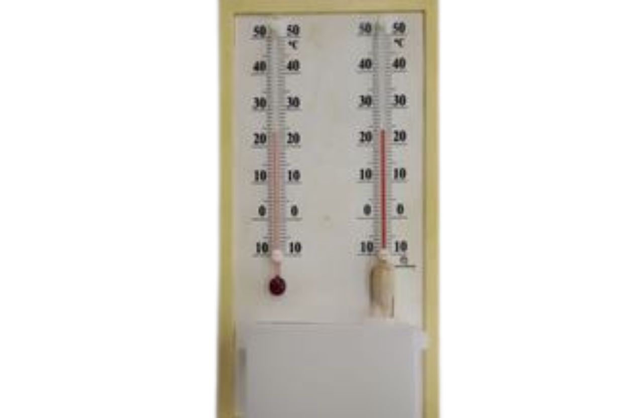 O psicrômetro giratório é um instrumento destinado a verificar a umidade relativa do ar. O aparelho é composto de dois termômetros, um com a finalidade de registrar a temperatura ambiente (bulbo seco) e, outro com cadarço, após umedecido com água para registro da temperatura do bulbo úmido.