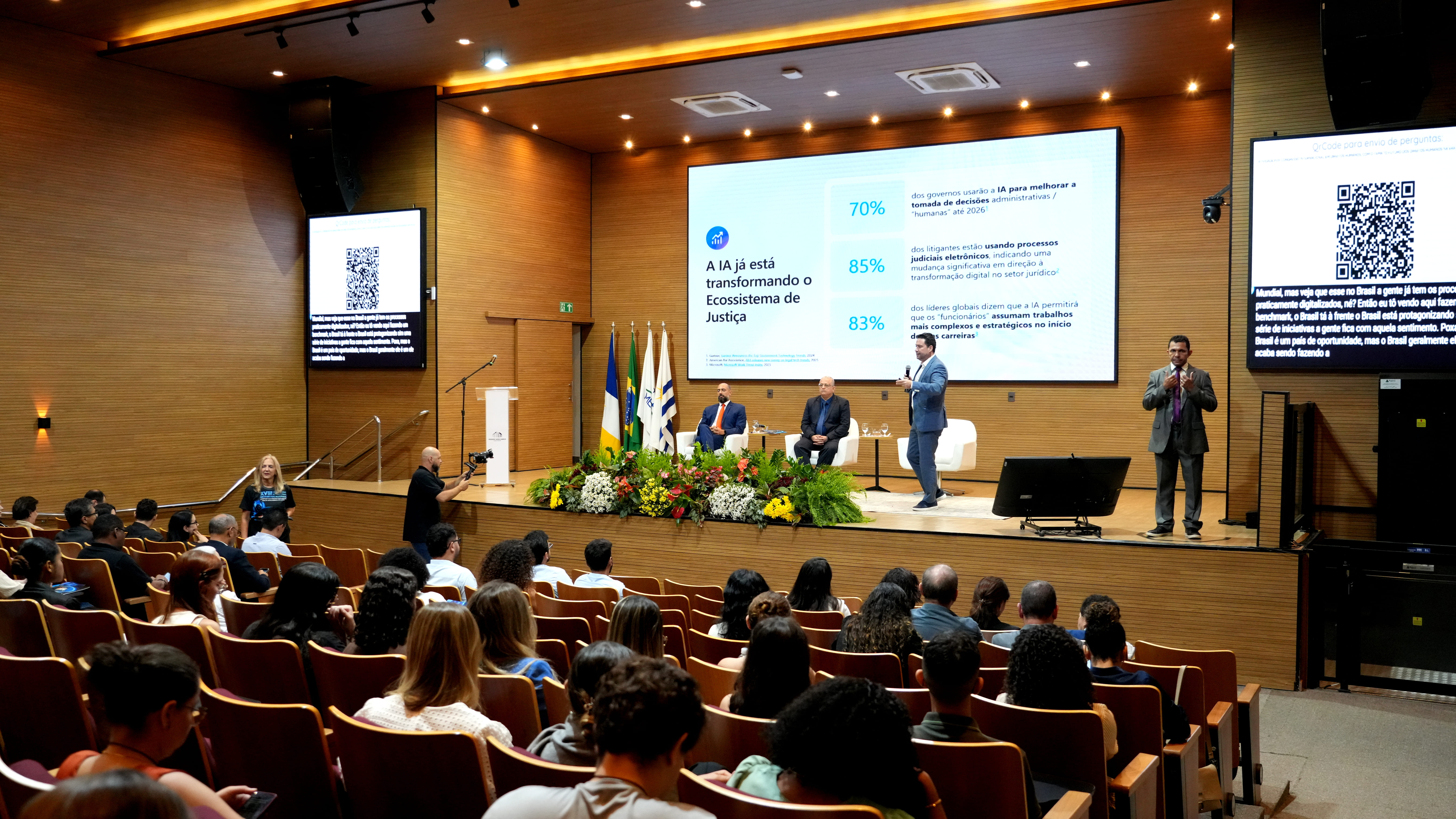 A apresentação abordou ferramentas como copilotos e agentes, infraestrutura em nuvem, capacitação e parcerias, como o programa FluênCIA, curso promovido pela Microsoft e que a Escola Superior da Magistratura Tocantinense (Esmat) desenvolveu quatro turmas neste ano de 2025.