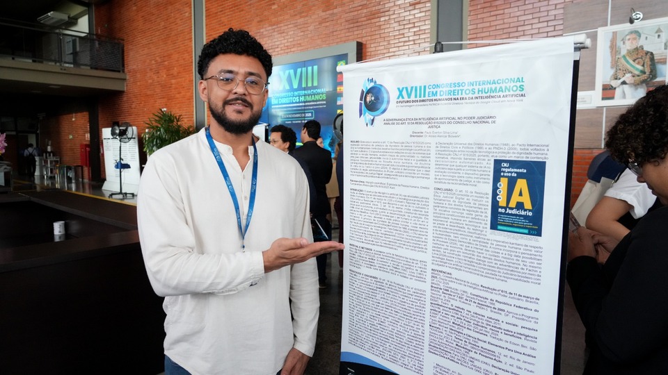 Entre os trabalhos da mostra está o do servidor do Judiciário Tocantinense e mestrando da UFT/ESMAT, Paulo Everton Silva Lima, que apresentou a pesquisa “A Governança Ética da Inteligência Artificial no Poder Judiciário: análise do artigo 10 da Resolução nº 615 do CNJ”. Ele explica que a Resolução, publicada em setembro de 2025, surge para estabelecer parâmetros claros de uso da IA no Judiciário em um cenário nacional ainda sem legislação específica.