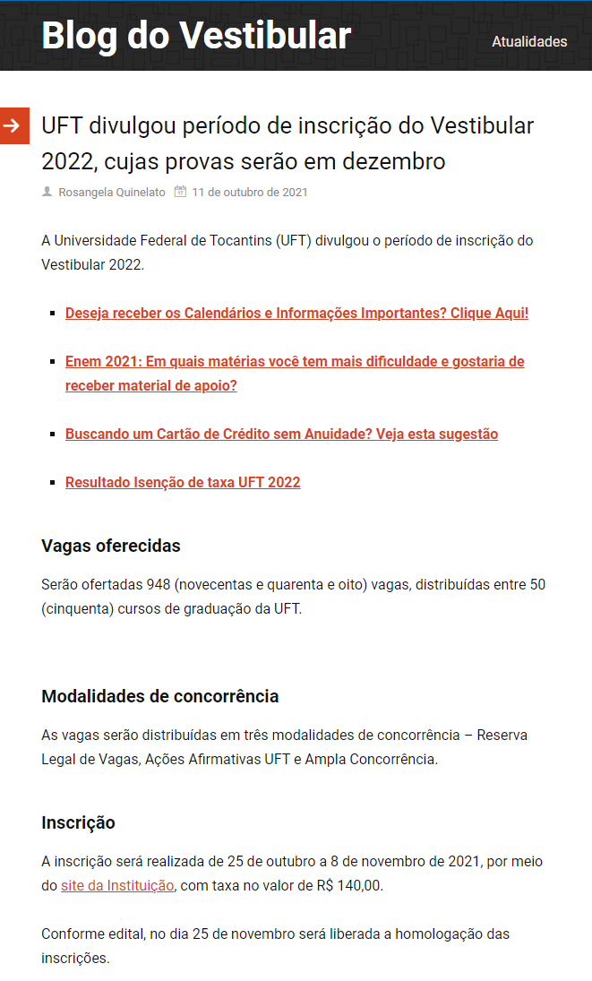 Matéria disponível: https://www.blogdovestibular.com/vestibular/uft-inscricao-vestibular-2022.html