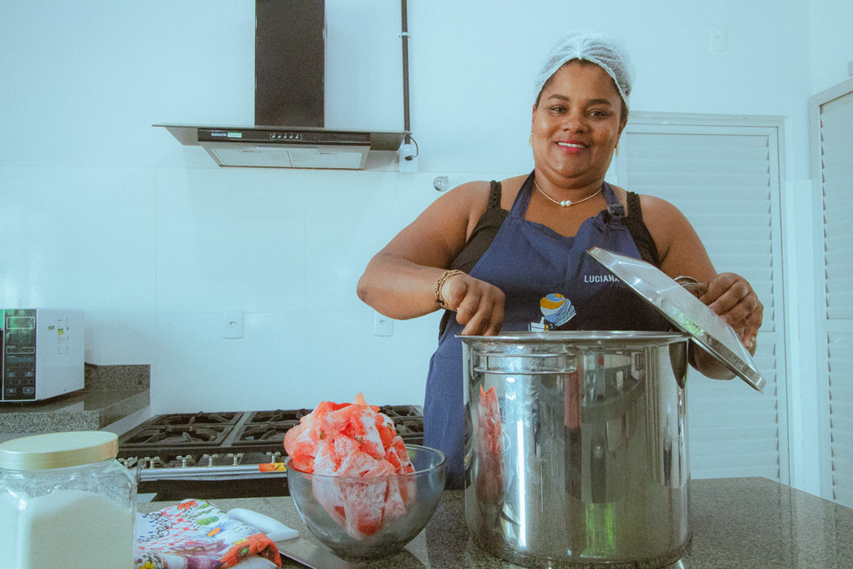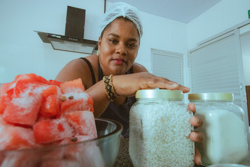 No Cerrado na Caixa, Luciana reinventa produtos como o capuccino de jatobá. “Criei receitas e pesquisei ingredientes. Não quero parar. Já fiz o curso de guia, hoje sou guia. Comecei a especialização em Atrativos Naturais e Culturais. Uma coisa puxa a outra. Hoje eu vejo além do que eu via antes. Eu não tinha perspectiva de vida, e agora tenho”.