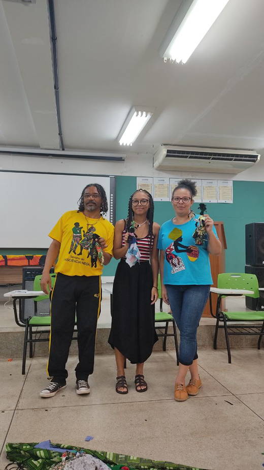 A professora Daniele, que conduziu a oficina juntamente com a bolsista de extensão Sibelle Couto, destaca ainda que as Abayomis são símbolos de resistência e poder, sobretudo, das mulheres negras: “Quando fazemos as bonecas em grupo, as histórias que são partilhadas permitem acessar memórias como efeitos de violências e também das práticas de resistência. Buscamos principalmente formas afirmativas de habitar o mundo e esperamos que as experiências partilhadas nas oficinas ressoem para outros espaços formativos, como nas práticas de estágio, ações de extensão e salas de aula”.