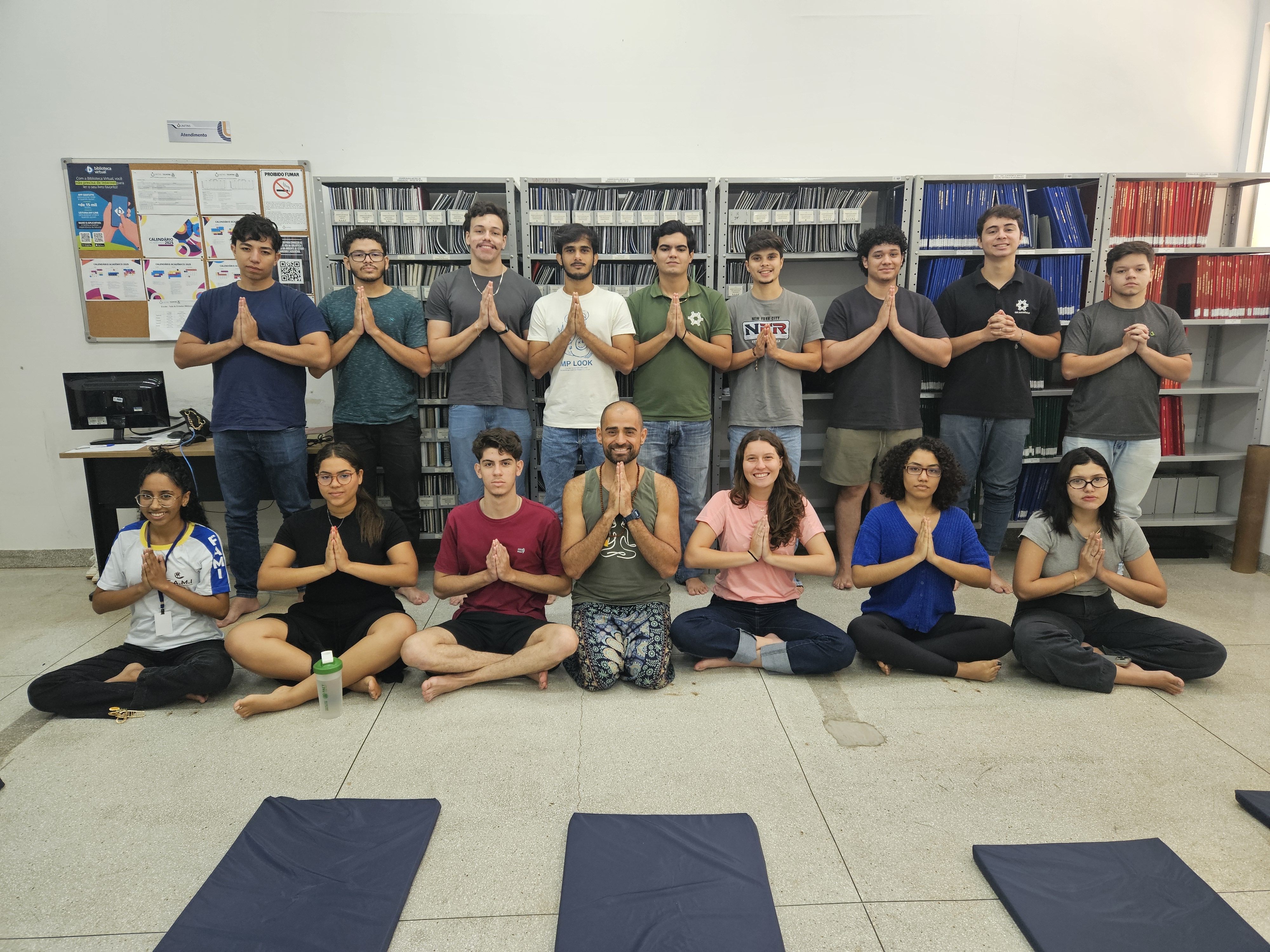 Na manhã desta quarta-feira, 30 de abril de 2025, o Centro de Práticas Integrativas e Complementares (Cepic) da UFT participou do I Festival de Criatividade e Inovação da Universidade Estadual do Tocantins (Unitins) com a oficina "Prática de Hatha Yoga: bem-estar e criatividade". Os participantes da oficina tiveram a oportunidade de praticar o Hatha Yoga Clássico Indiano por meio da execução de ásanas (posturas corporais) e de pranayamas (exercícios de respiração).