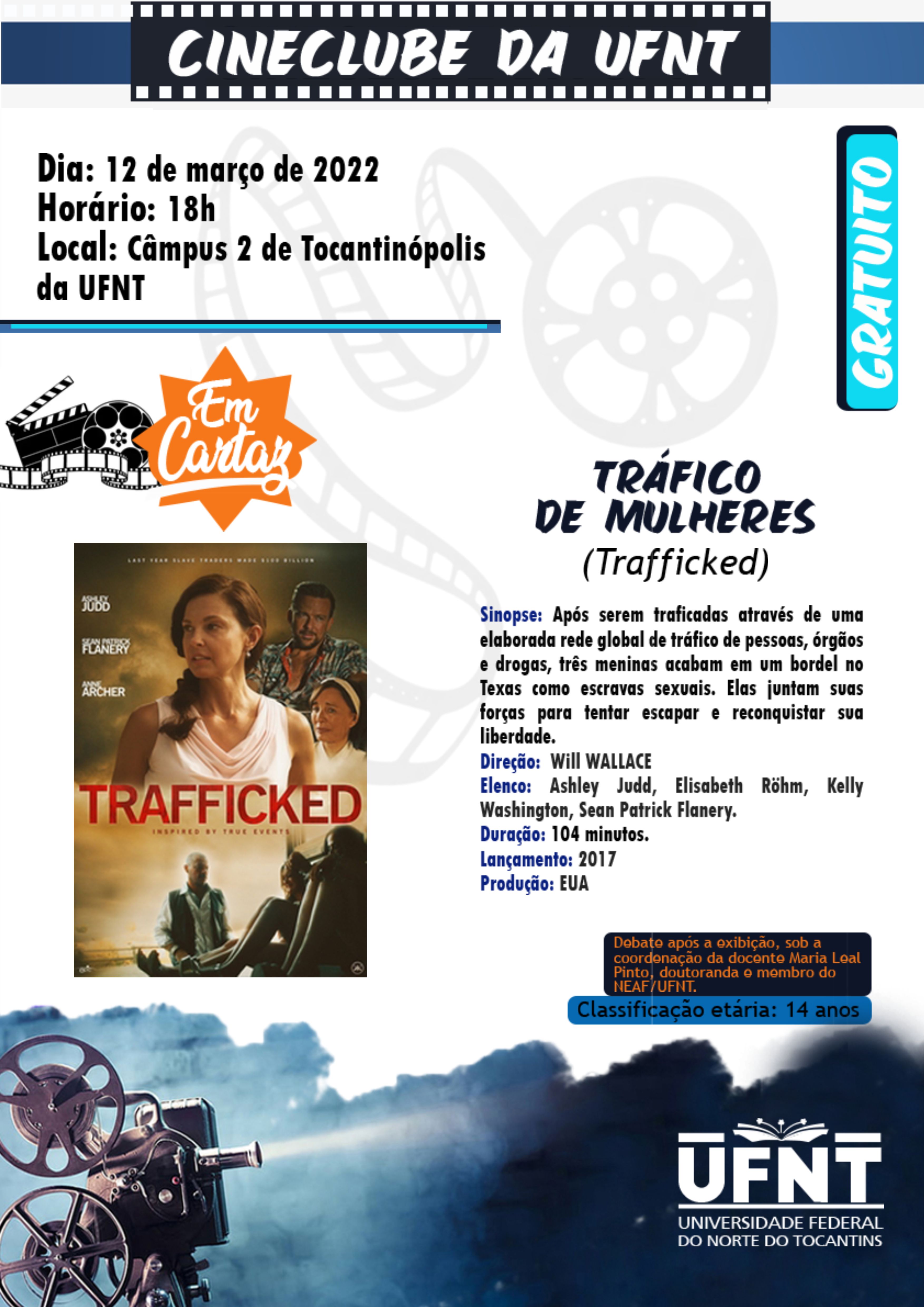 Seguindo a programação do Cineclube em 2022, agora em caráter presencial, o projeto de extensão vai exibir o filme “Tráfico de Mulheres”, dirigido por Will Wallace, neste sábado (12). A exibição será no Câmpus 2 da UFNT, em Tocantinópolis, às 18h. O encontro seguirá as regras de biossegurança e todos os presentes deverão usar máscaras.