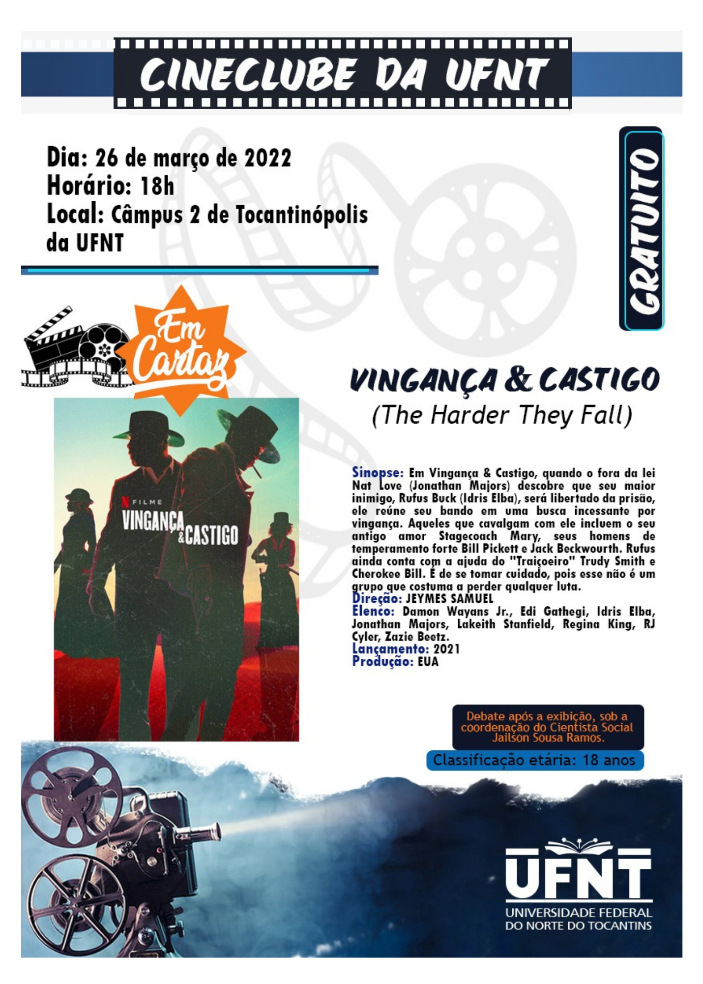 Seguindo a programação do Cineclube em 2022, o projeto de extensão vai exibir o filme “Vingança & Castigo”, dirigido por Jeymes Samuel, neste sábado (26). A exibição será no Câmpus 2 da UFNT, em Tocantinópolis, às 18h. O encontro seguirá as regras de biossegurança e todos os presentes deverão usar máscara.