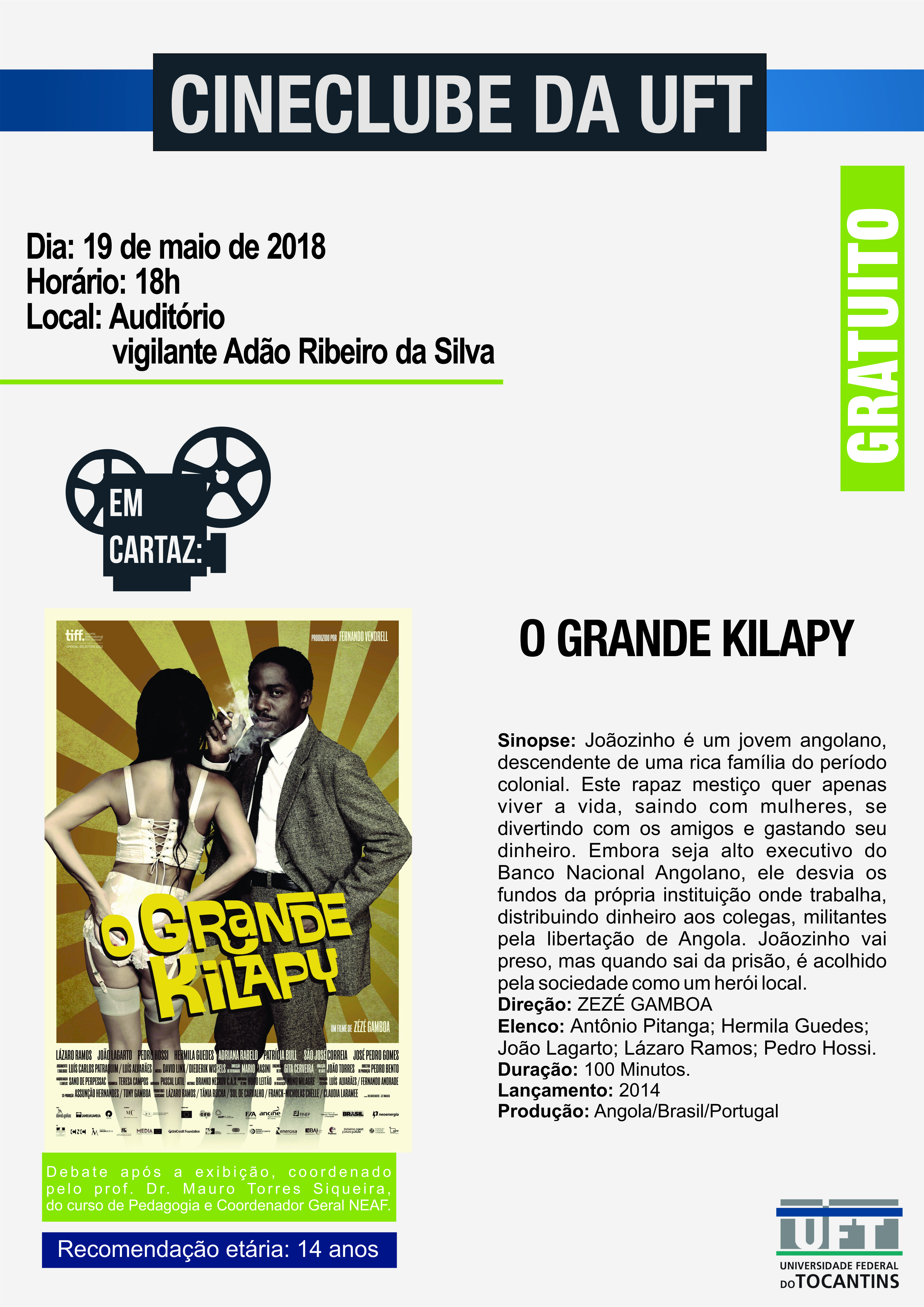 O projeto de extensão Cineclube, do Câmpus de Tocantinópolis, continua com a sua programação semanal e exibe neste sábado (19) o filme “O Grande KilapY". Está será a 278ª exibição do projeto, com início às 18 horas, no auditório Vigilante Adão Ribeiro da Silva. Após a exibição ocorrerá o tradicional debate com os presentes.