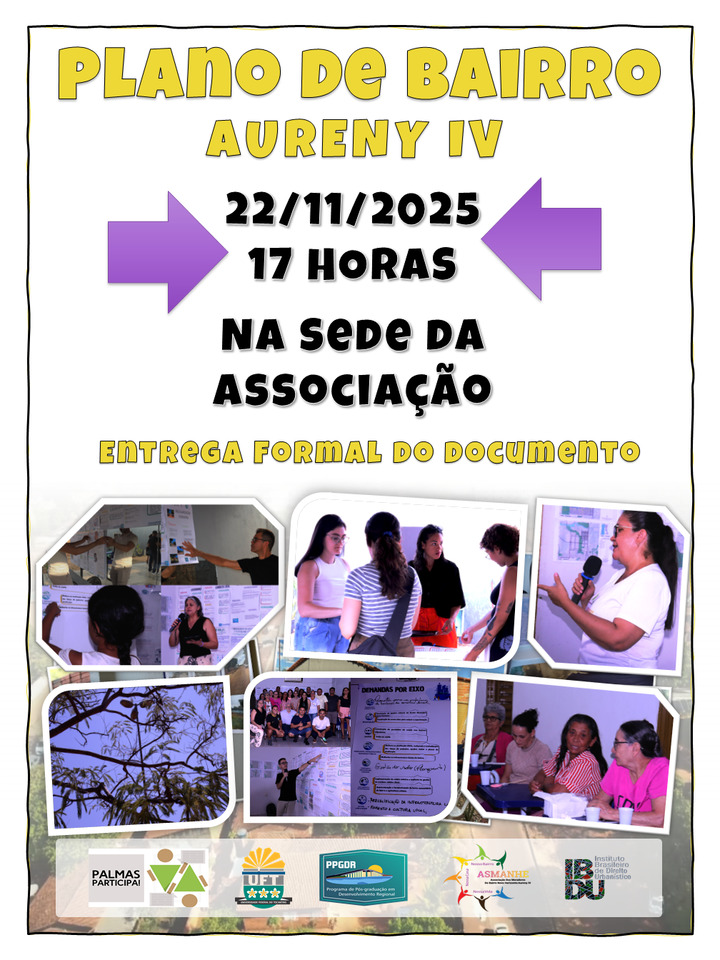 A comunidade do Jardim Aureny IV se prepara para um momento histórico: a entrega oficial do seu Plano de Bairro, instrumento técnico e estratégico que promete impulsionar transformações significativas no território. O evento ocorrerá no próximo dia 22 de novembro, sábado, às 17 horas, na sede da associação de moradores local.