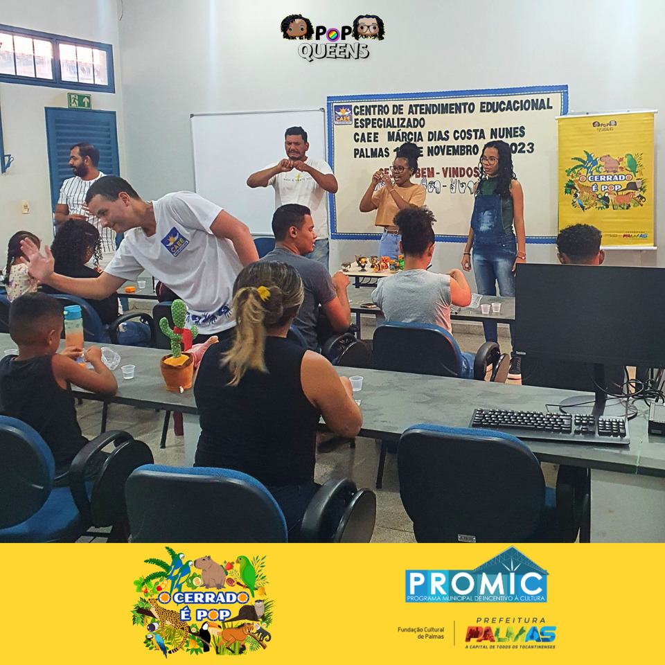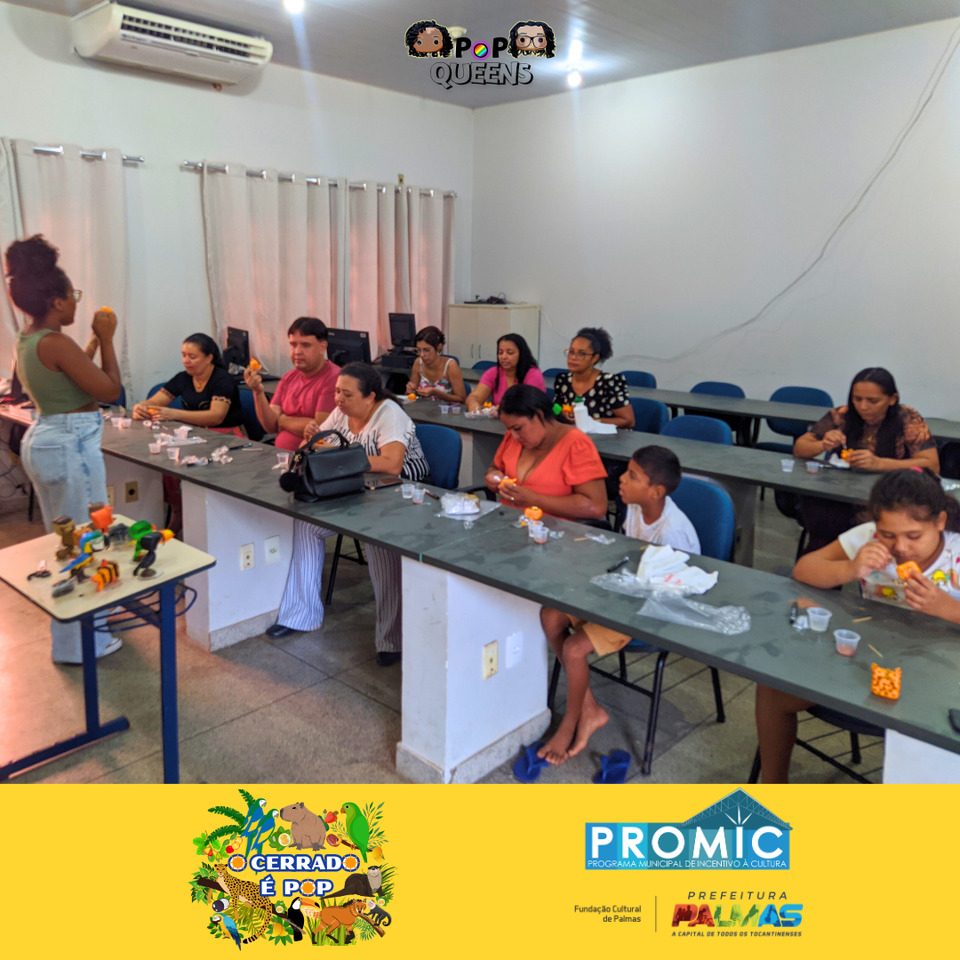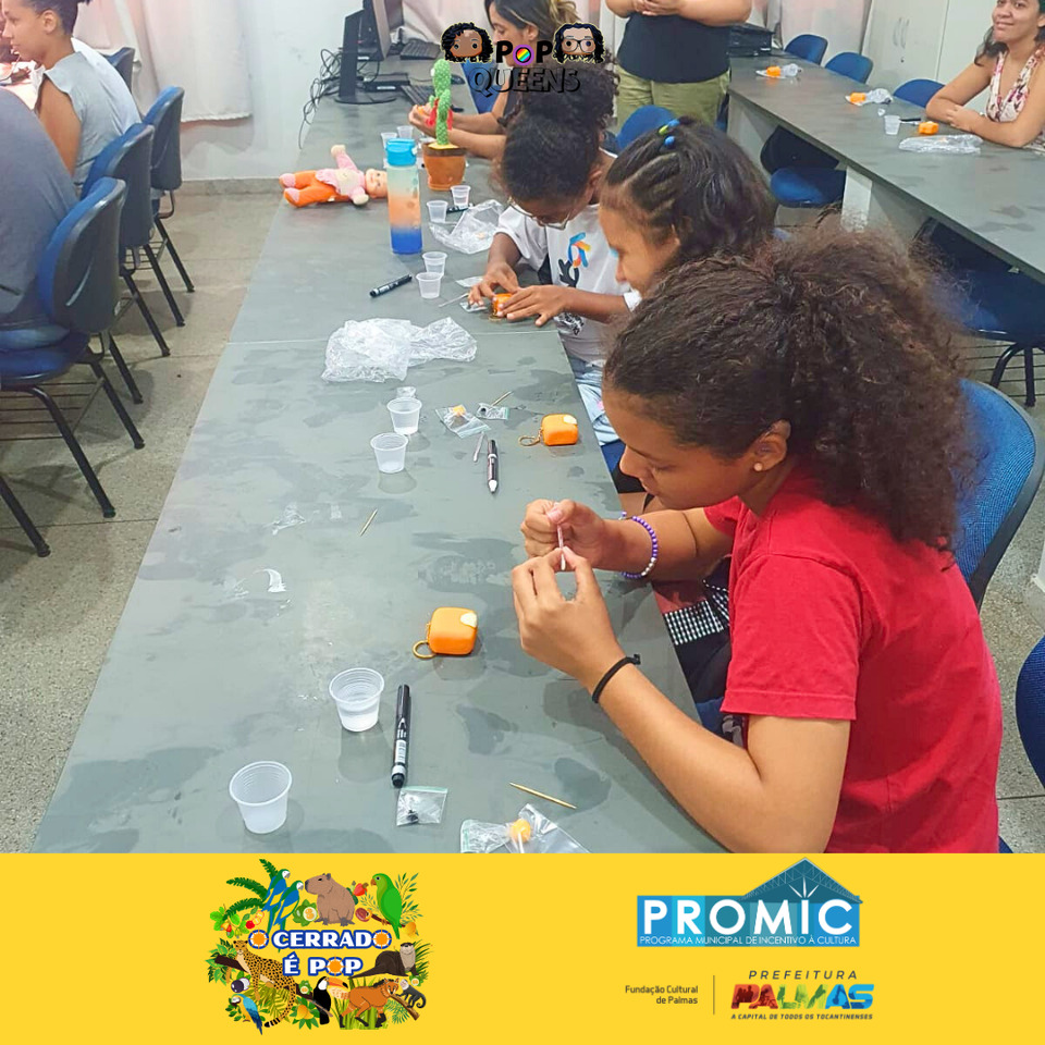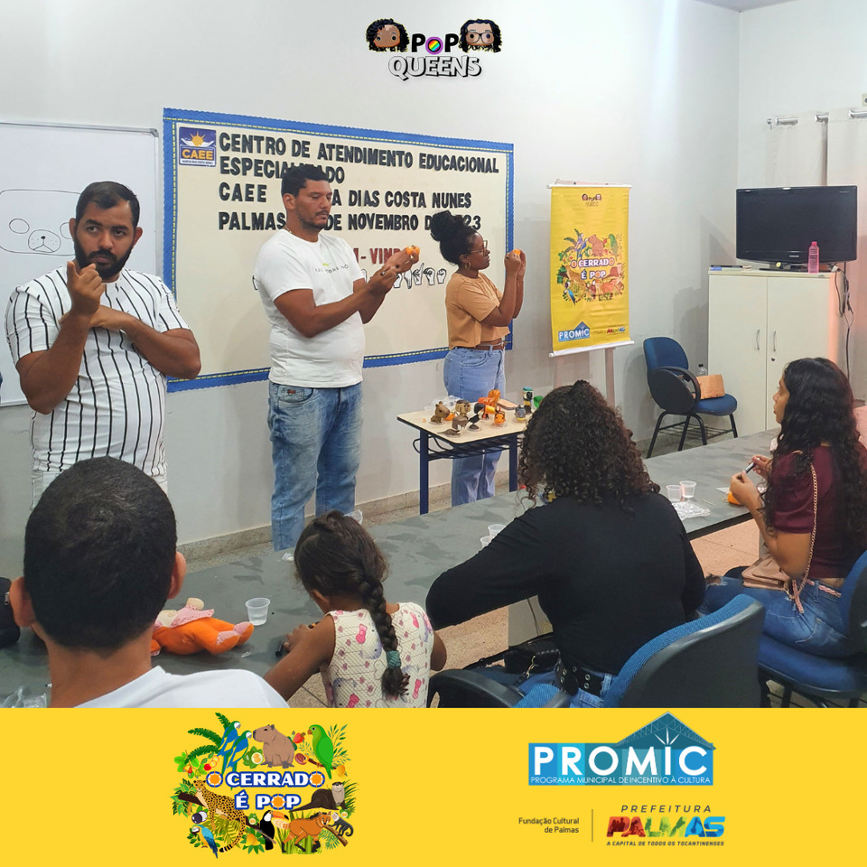 As estudantes realizaram ao longo deste mês e do mês de outubro, as oficinas do projeto "O Cerrado é pop" em algumas escolas municipais de Palmas e também no CAEE. O projeto tem o objetivo de eternizar os animais do Cerrado nas esculturas de biscuit, no estilo Funko Pop, que são bonecos de cabeças gigantes.
