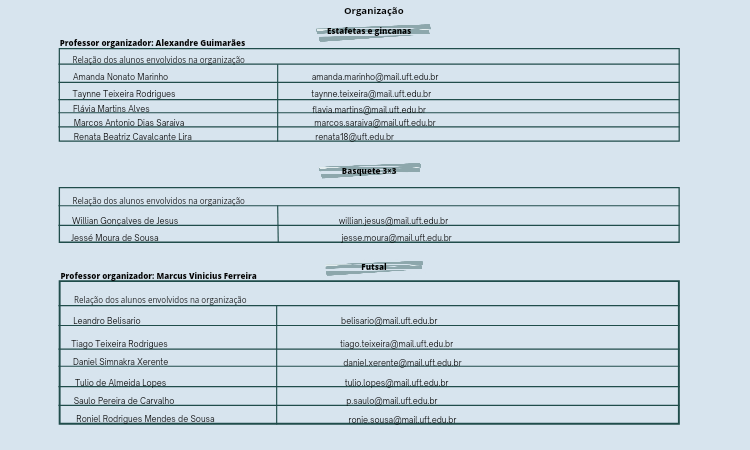 A prática deste esporte está sendo organizada pelo professor Marcus Vinicius Ferreira e por um grupo de alunos do Curso de Educação Física. Os interessados em participar, devem entrar em contato com os organizadores para realizar as inscrições das equipes.