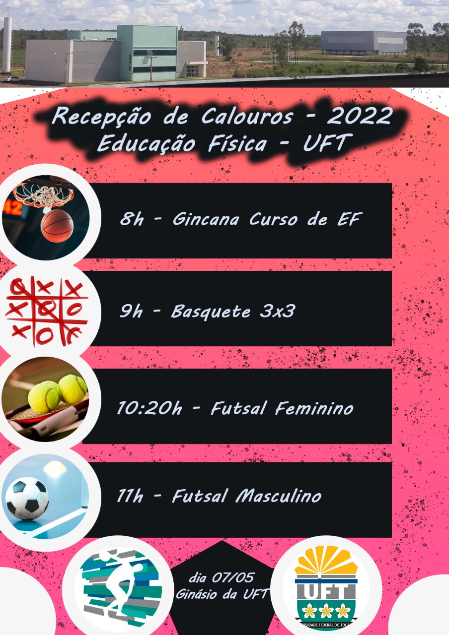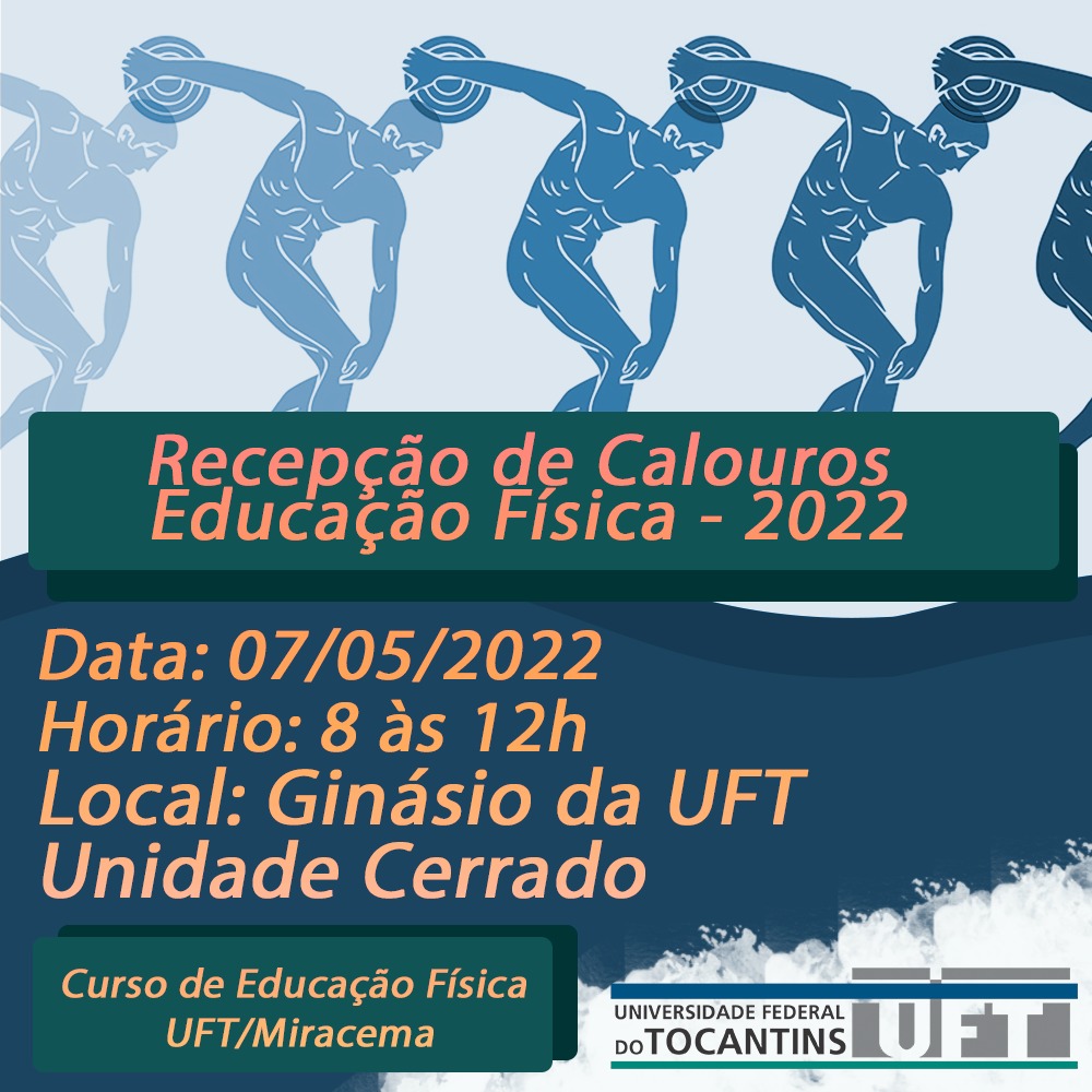 Pensando em proporcionar a recepção e a integração dos alunos ingressantes, o Curso de Educação Física da Universidade Federal do Tocantins, Câmpus de Miracema, está preparando um evento de recepção aos calouros de 2022. O evento é organizado pelos professores Alexandre Guimarães e Vicente Calheiros, da Coordenação do curso; e pelos professores Marciel Barcelos Lano e Marcus Vinicius Ferreira.