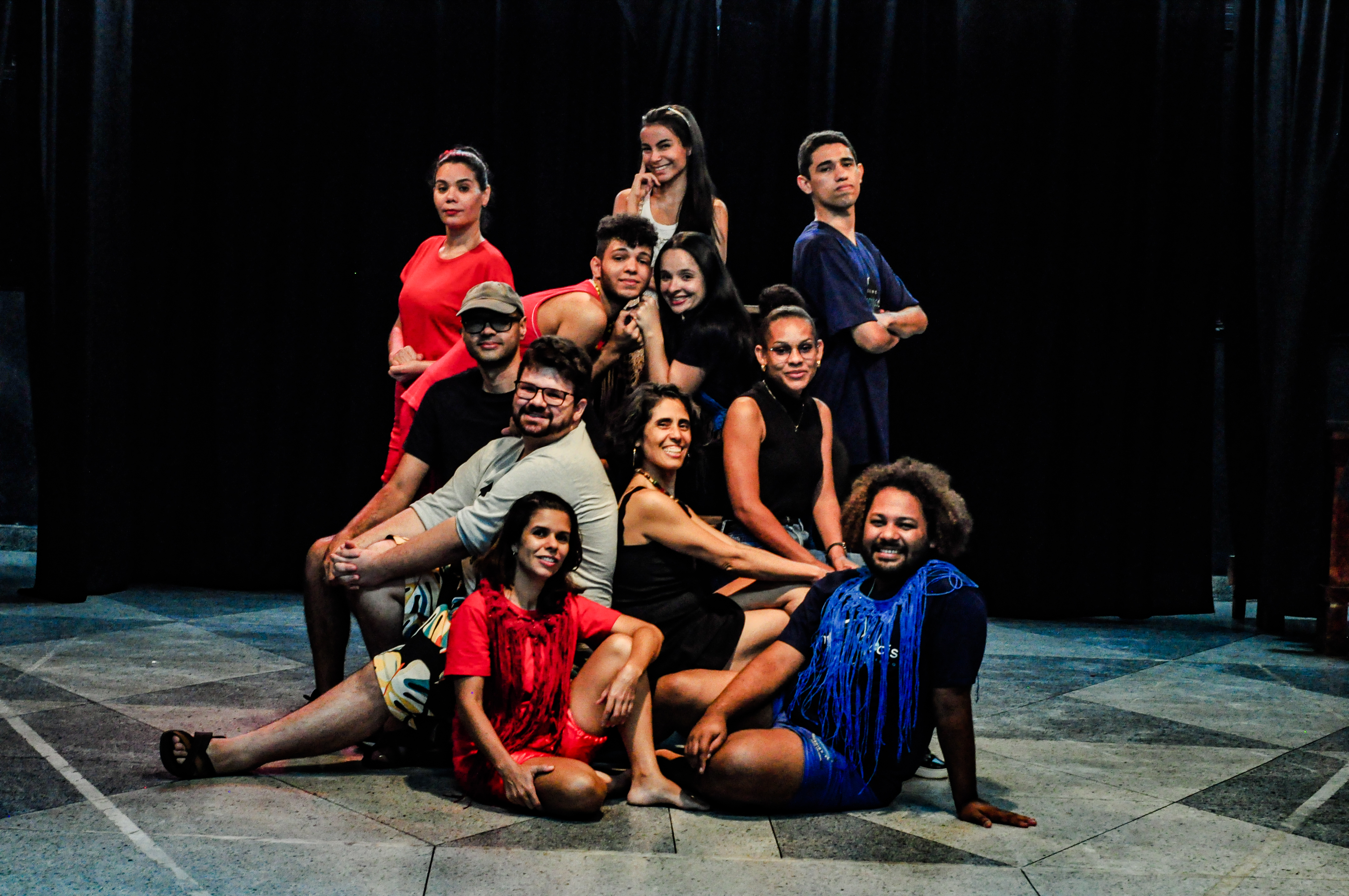 O nono espetáculo do grupo é produzido em parceria com o Projeto de Extensão Em Trama - Núcleo de Encenação, Treinamento e Drama do curso de Licenciatura em Teatro, de forma independente. O elenco é composto por: Amanda Nobre, Ana Kamila Castaño, Icaro Railan, Karla Pollyanna, Sávio Danrley, Patrícia de Sá e Pedro Macedo. A artista Vivian Oliveira assina a cenografia e figurino, já a iluminação é de Lúcio Miranda. O espetáculo conta ainda com melodias do músico Heitor Oliveira, produção executiva e assistência de direção de Lucas Justino Vettore.