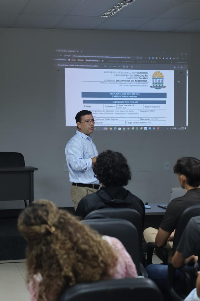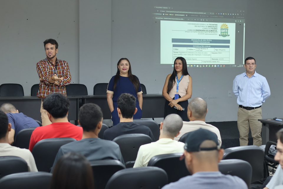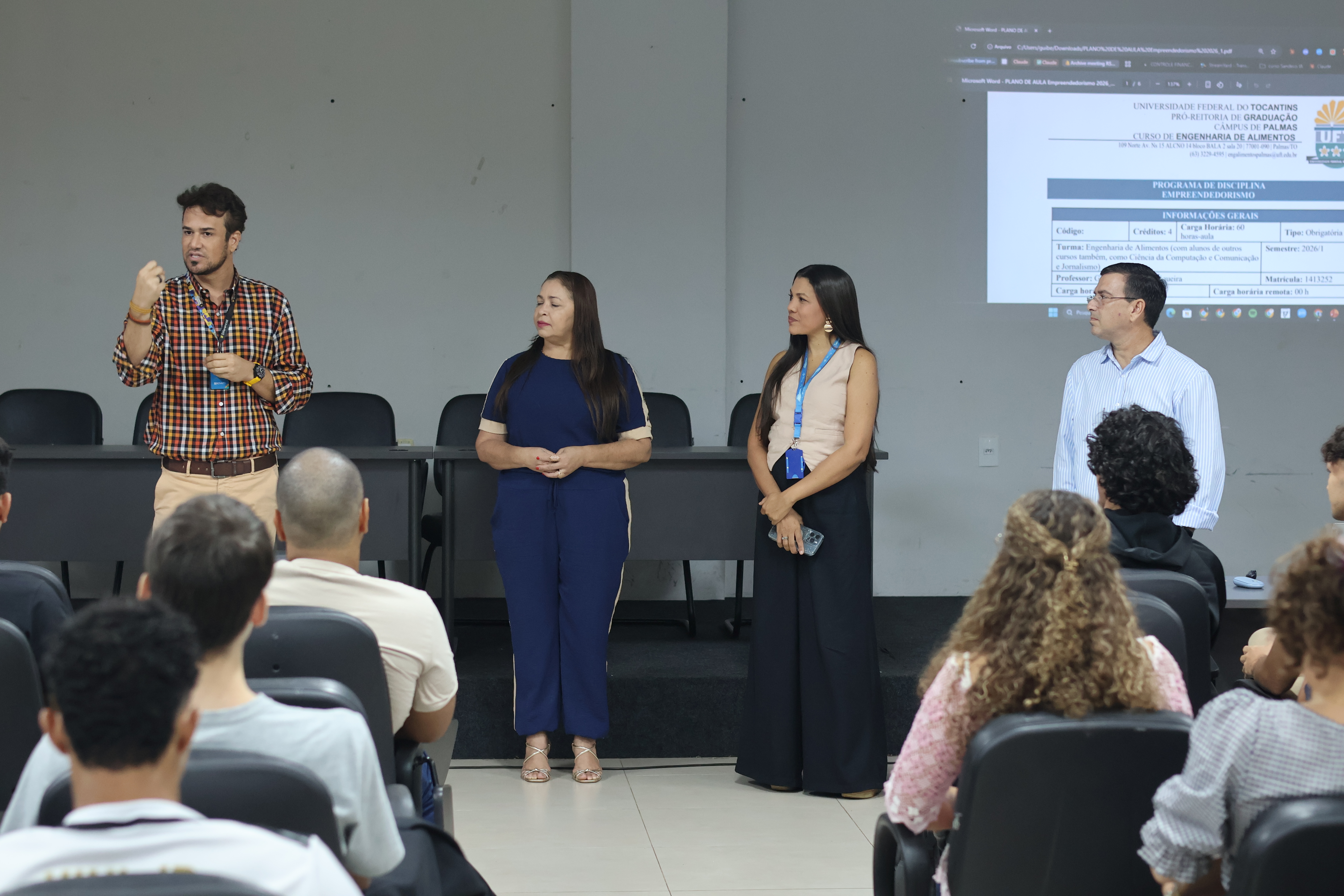 Acadêmicos dos cursos de Engenharia de Alimentos, Ciência da Computação e Administração participaram, na manhã desta quarta-feira (11), no auditório da Reitoria, em Palmas, da aula inaugural de uma disciplina integrada sobre Empreendedorismo Multidisciplinar.