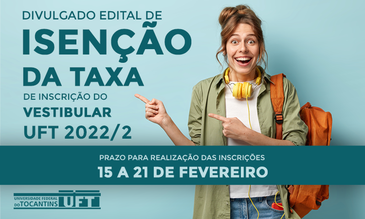 A Coordenação reforça que os candidatos que solicitarem a isenção devem realizar a inscrição no Vestibular 2022/2 normalmente. A solicitação de isenção da taxa de inscrição não substitui a obrigatoriedade de realização da inscrição no Vestibular UFT.