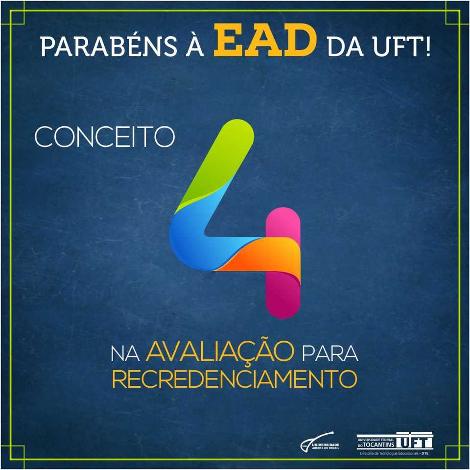 A Educação a Distância (EaD) da UFT foi contemplada com nota 4, após a avaliação do Ministério da Educação (MEC) para o recredenciamento, válido por oito anos a partir da data da publicação do ato de recredenciamento. A nota máxima é 5.