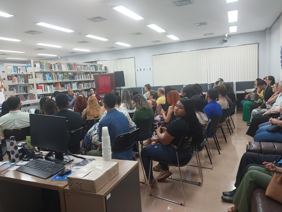 A mesa de lançamento foi composta por Paulo Aires Marinho, por Ciro Gonçalves, responsável pelo texto de orelha e pela capa da publicação, e pela professora Katya Lacerda Fernandes, que realizou a mediação.