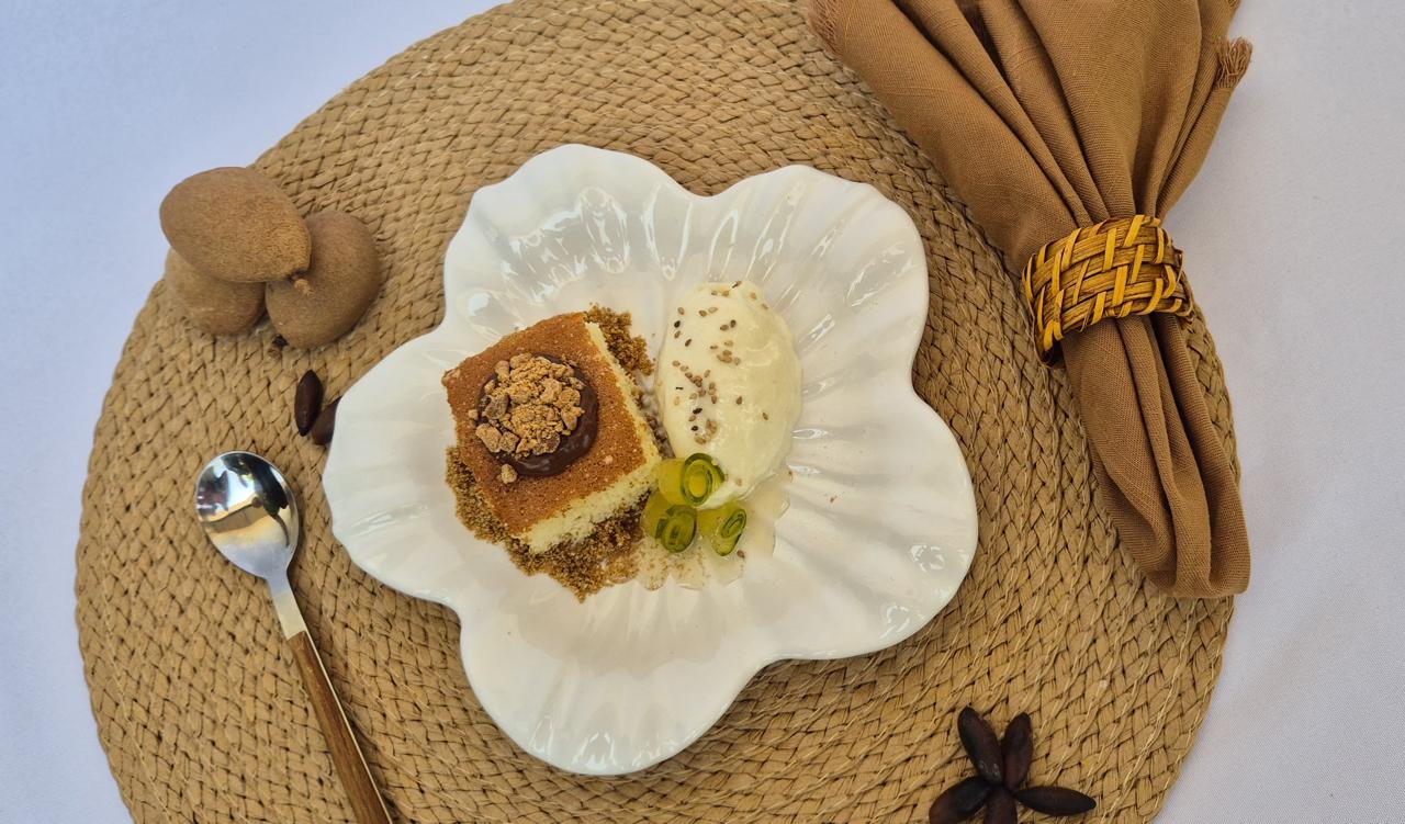 Prato vencedor do Festival Gastronômico é um Pão de ló com brigadeiro de mandioca, sorvete de mandioca e doce de mamão, criado por Mayára Araujo Torres (Foto: Divulgação)
