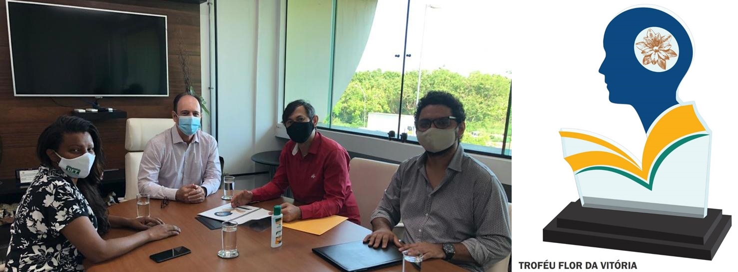 Vone Petson Pereira Branquinho, autor do projeto vencedor, cujo nome é "Flor da Vitória", se apresentou na manhã desta segunda-feira (09), em solenidade com o reitor da Universidade Federal do Tocantins, Luís Eduardo Bovolato, a pró-reitora, Maria Santana Ferreira e o diretor de extensão e cultura, Bruno Barreto, para entregar o projeto e assinar o termo de cessão de direitos autorais.